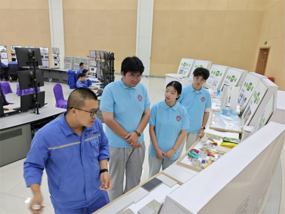 实践队员们随后深入生产装置区,技术总监在现场重点解析了流化床反应器的运行机理和气相聚合工艺的控制要点:“流化床反应器中,原料在高速气流作用下形成类似沸腾的状态,这样的设计能有效提升反应效率和产品质量;而气相聚合工艺通过对温度、压力等反应条件的精准调控,确保聚合物的分子结构和性能稳定达标。”