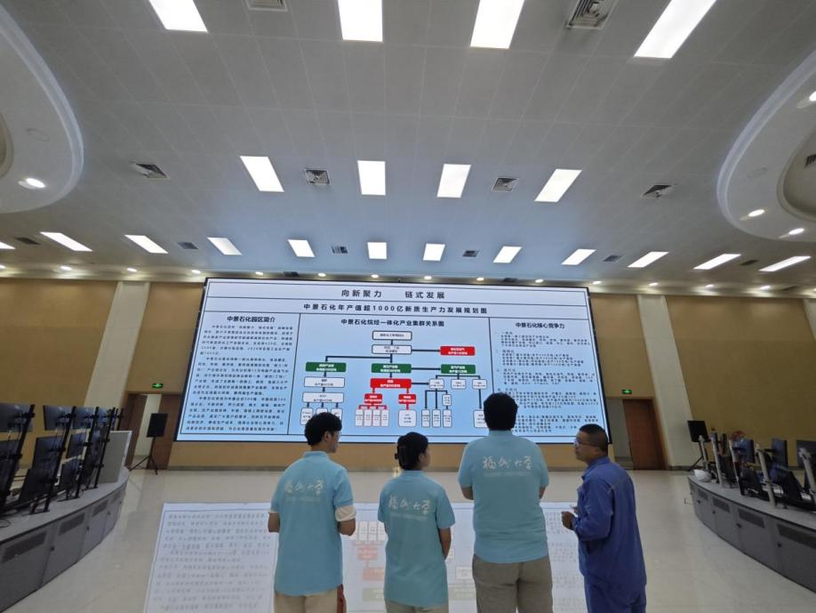 “化拓新岗,学启未来”实践队前往福清中景石化科技园开展工业研学活动。本次研学旨在将理论知识与实际生产深度融合,激励青年学子以青春之我,为中国式现代化建设贡献力量。实践队成员们深入园区,实地探秘高端石化产业链的智造体系,在实践中书写属于当代青年的奋进篇章。产业链的智造体系,在实践中书写属于当代青年的奋进篇章。