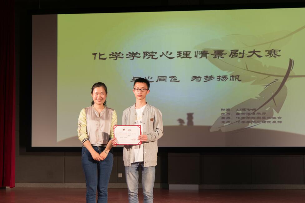 比赛由主持人介绍到场来宾及评分规则拉开帷幕。首先由2016级嘉锡班带来他们的表演――《贷款风波》,该剧讲述了贷款风波导致主人公内心崩溃,裸贷,无法还钱,曝光裸照等一系列严重后果,最后主人公在心理保健员的开导下终于找回了自己的故事。紧随其后的是2016级化学二班带来的《动听》和2016级化学一班带来的《沉默的百灵鸟》。在此期间,主持人还进行了现场随机抽奖活动,抽中同学都畅所欲言自己对前面作品的看法。最后,是由2016级制药工程班隆重推出的《两个世界的你》,该剧通过主人公在现实和网络中截然相反的行为来表现他内心的矛盾,故事结尾主人公在同学们的一系列帮助下最终克服内心矛盾,重获健康。在心理健康教育与辅导中心许琳玲老师经常点评之后,主持人宣布了最终比赛成绩--2016级化学一班摘得本次比赛的桂冠,成功晋级校赛。