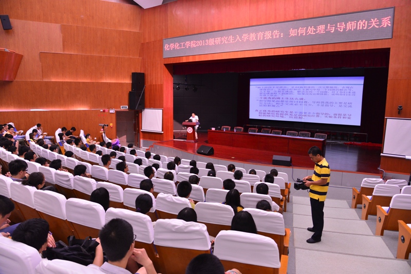 化学化工学院2013级研究生新生入学教育讲座在图书馆博学厅顺利举行。化学化工学院黄剑东副院长、党委施卫华副书记担任主讲,他们给研究生新同学们带来一场内容丰富的思想教育讲座。
