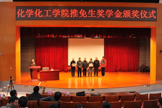 首先,黄剑东副院长宣读了“推免生奖学金”获得名单:11级化学工艺专业研究生陈晶晶、化学工程专业研究生许承志、分析化学专业研究生林立森。这些同学是木瓜视频