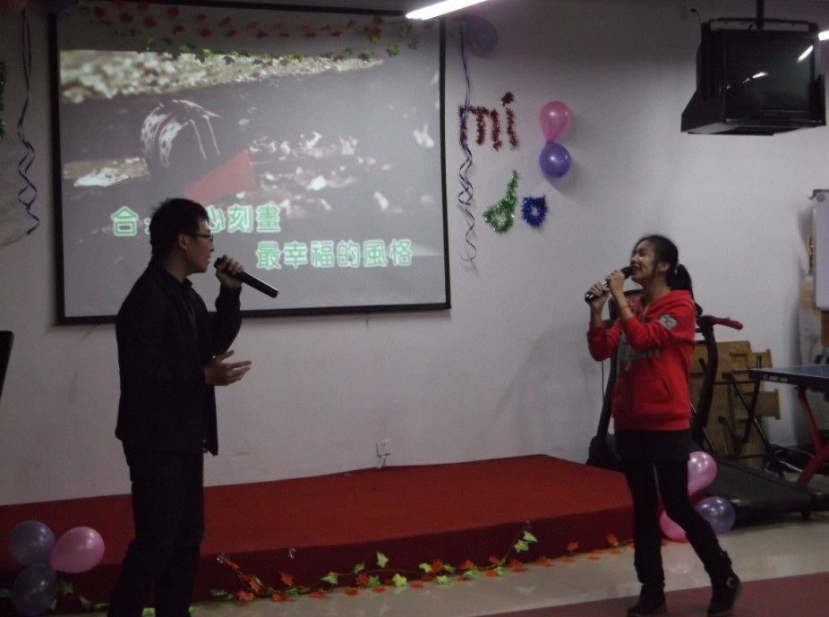 整场晚会高潮迭起,掌声雷动。最后11级陈斌,12级杨灿,11级胡玉花分别获得此次大赛的冠、亚、季军。观众们都依依不舍的离开了会场,笑谈间仍是歌手大赛中的喜趣事儿。