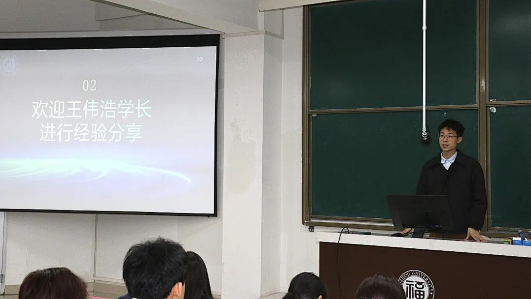 《硫芯科技》项目团队负责人王伟浩学长首先以路演展示的形式让同学们感受紧张而兴奋的大赛现场氛围,接着以自己两年来的比赛经验,从创新大赛的项目分类、项目标准、团队架构、团队分工、项目打磨等多个方面具体细致地介绍了参赛过程。