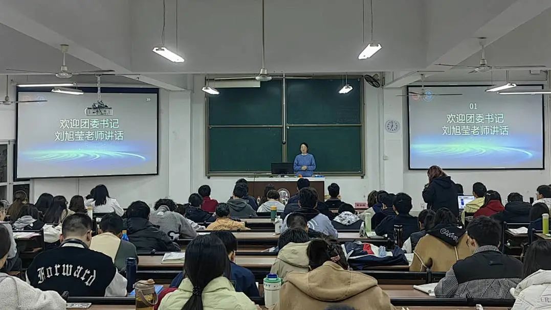 团委书记刘旭莹老师,辅导员李诗琪、李星星老师,学院历届创新大赛优秀团队代表及2023级全体本科生参加此次活动。