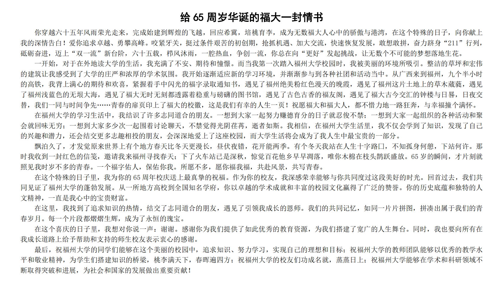 陈春汉 《给65周岁华诞的福大一封情书》、