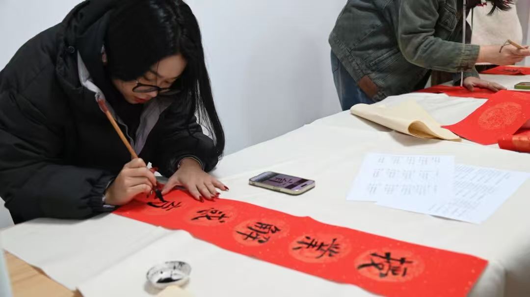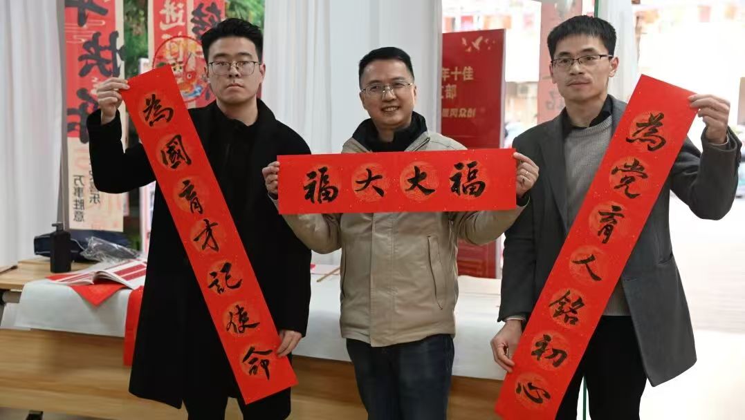 在活动现场,校友和师生们满怀激情,挥毫泼墨、笔走龙蛇,以笔寄意、以字传情,一幅幅充满着新春气息的春联和一张张满载着真诚祝愿的“福”字跃然纸上,书写的是汉字,传递的是祝福,温暖的是人心,大家在书写中感受传统年味,在墨香未干的春联祝福里开启蛇年新程。