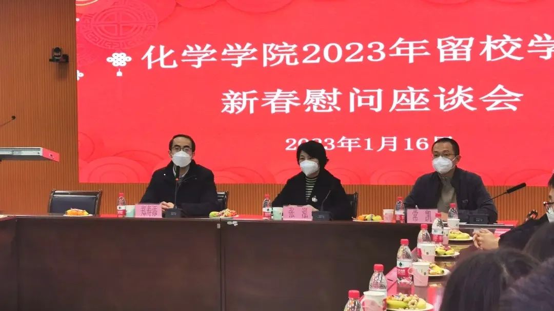 在与留校学生代表座谈会上,院领导仔细了解同学们的健康状况,共话寒假规划,送上新春问候。通过交流了解了同学们的留校安排和需求,对留校学生在科研进展和生活学习中所遇到的问题一一给予了解答。郑寿添院长嘱咐同学们在新年伊始,要健康作息、注意留校期间实验室安全问题、多与家人、同学沟通联系,保持乐观享受、积极进取的心态,以饱满的热情投入到学习生活中去,如遇到困难时要积极与辅导员、导师联系和反映,学校、学院将全力为同学们排忧解难。