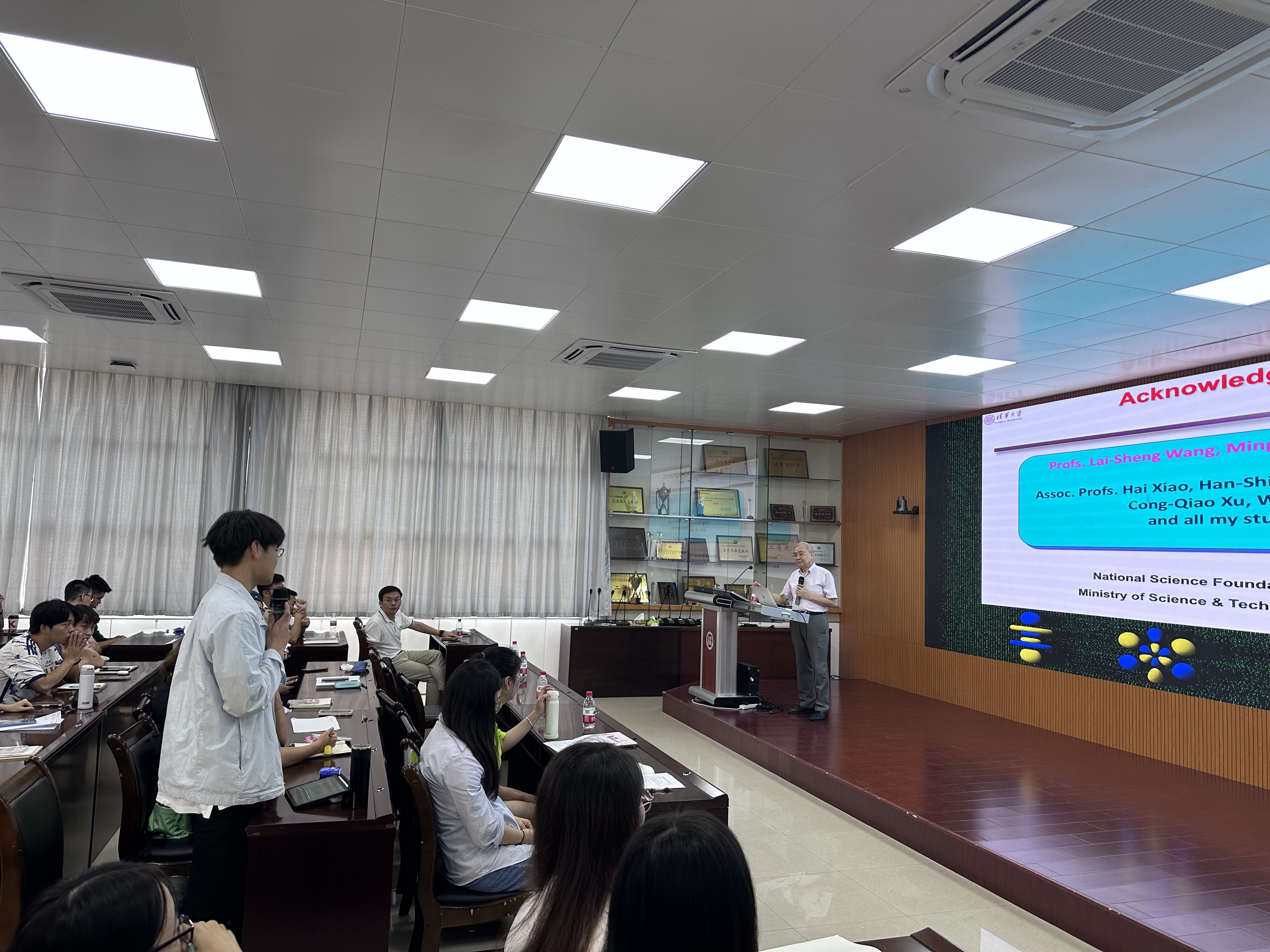 最后,在详细讲述Borophene时 ,李隽教授回忆卢嘉锡先生曾在足球烯的发现后,指导他去探索硼族元素的类似结构,正是因为卢嘉锡先生为他指明方向,才有了他现如今的发展。说到这里,李隽教授表达了对卢嘉锡先生的深切缅怀,同时希望同学们将严谨求实的嘉锡精神不断传承发扬下去。