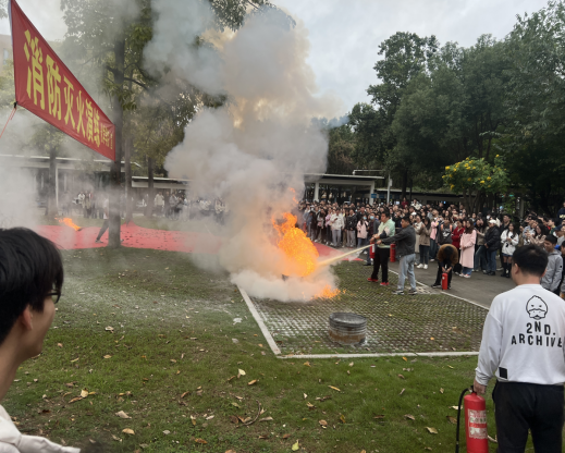 联合学校保卫部消防科组织本院近500名研一学生在实验教学中心旁进行了消防灭火演练,学院领导林子俺副院长出席活动。