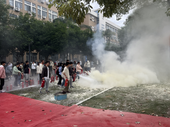 演练前,教官给同学们详细介绍了火灾的分类与特点、灭火的基本方法以及几种常见灭火器的适用范围,并示范了干粉灭火器的使用方法。在认真听讲及观摩后,同学们亲身体验了现场灭火的过程,学会了熟练使用干粉灭火器将汽油燃起的浓烟大火迅速扑灭,部分同学还尝试了使用水基泡沫灭火器、CO2灭火器和灭火毯,感受不同器材各异的灭火效果,同学们全程聚精会神,纷纷表示收获满满。