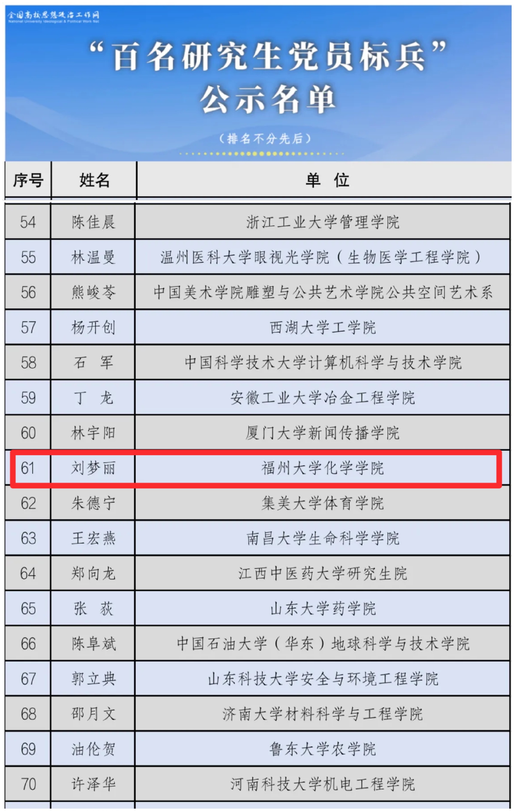 在此次研究生“双百”遴选中实现双丰收!其中,创新创业党支部入选“百个研究生样板党支部”,博士研究生刘梦丽获评“百名研究生党员标兵”,实现我校零的突破!这也是我校首次同时囊括全国高校“百个研究生样板党支部”和“百名研究生党员标兵”!