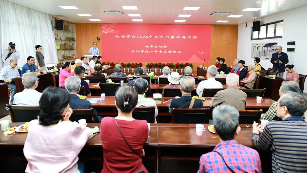 郑寿添院长代表学院对参加本次活动的老同志们送上热烈诚挚的节日祝贺并向在座老师详细介绍了学院一年来的发展。今年,在全院全体教职工的共同努力下,学院工作在“双一流”建设、人才培养、科研实力提升、师资队伍壮大等方面都取得了骄人的成绩。学院的每一步成长都离不开老同志们的支持,衷心祝愿大家节日快乐,家庭幸福,健康长寿!