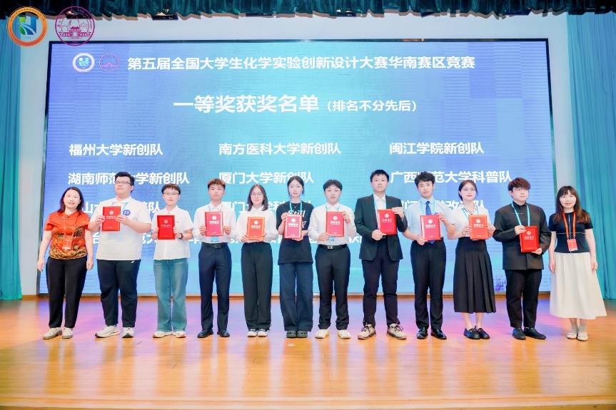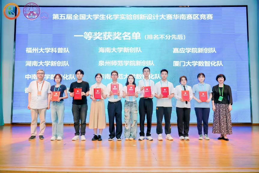 作为国家级A类赛事,全国大学生化学实验创新设计大赛自2019年创办以来已成功举办四届,现已成为国内规模最大、影响力最广的高校化学综合类学科竞赛。赛事采用分区选拔机制,覆盖全国七大分赛区,最终角逐全国总决赛。本次华南赛区竞赛共吸引来自广东、湖南、福建、海南以及广西的76所高校、186支队伍、913名师生同场竞技,竞赛规模与覆盖范围创历史新高。竞赛严格执行“双盲评审制”,经过网络评审、现场答辩等多环节比拼,最终共有29支队伍获得一等奖,49支队伍获得二等奖,55支队伍获得三等奖,15支队伍入围全国赛。