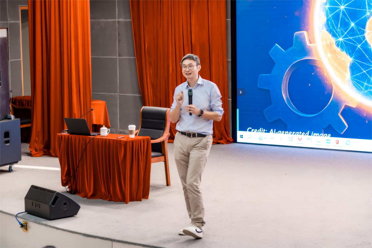 在图书馆明德厅顺利开展嘉锡科学讲座第001期暨2025级研究生新生入学教育。新加坡国家科学院院士、南洋理工大学教授陈晓东担任首讲嘉宾做专题报告。院长钟羽武教授主持本次活动,学院党委书记曾忠毅、学院党政班子成员、教师代表及2025级全体研究生参加了本次报告会。