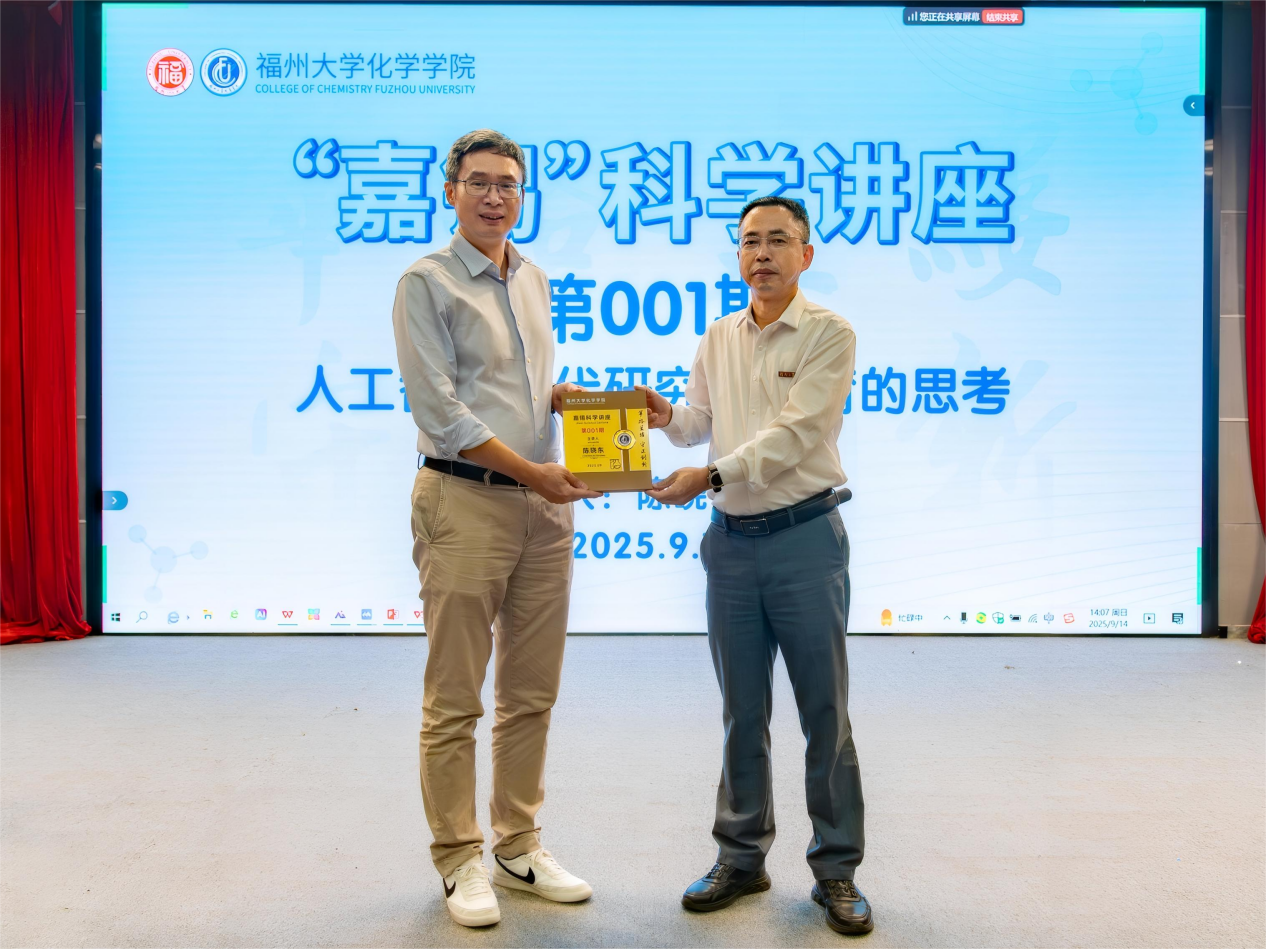 随后,学院党委曾忠毅书记代表学院,郑重地向陈晓东院士颁发嘉锡科学讲座主讲人荣誉证书,以此表彰陈院士在推动科学传承与学术交流方面所做出的杰出贡献。