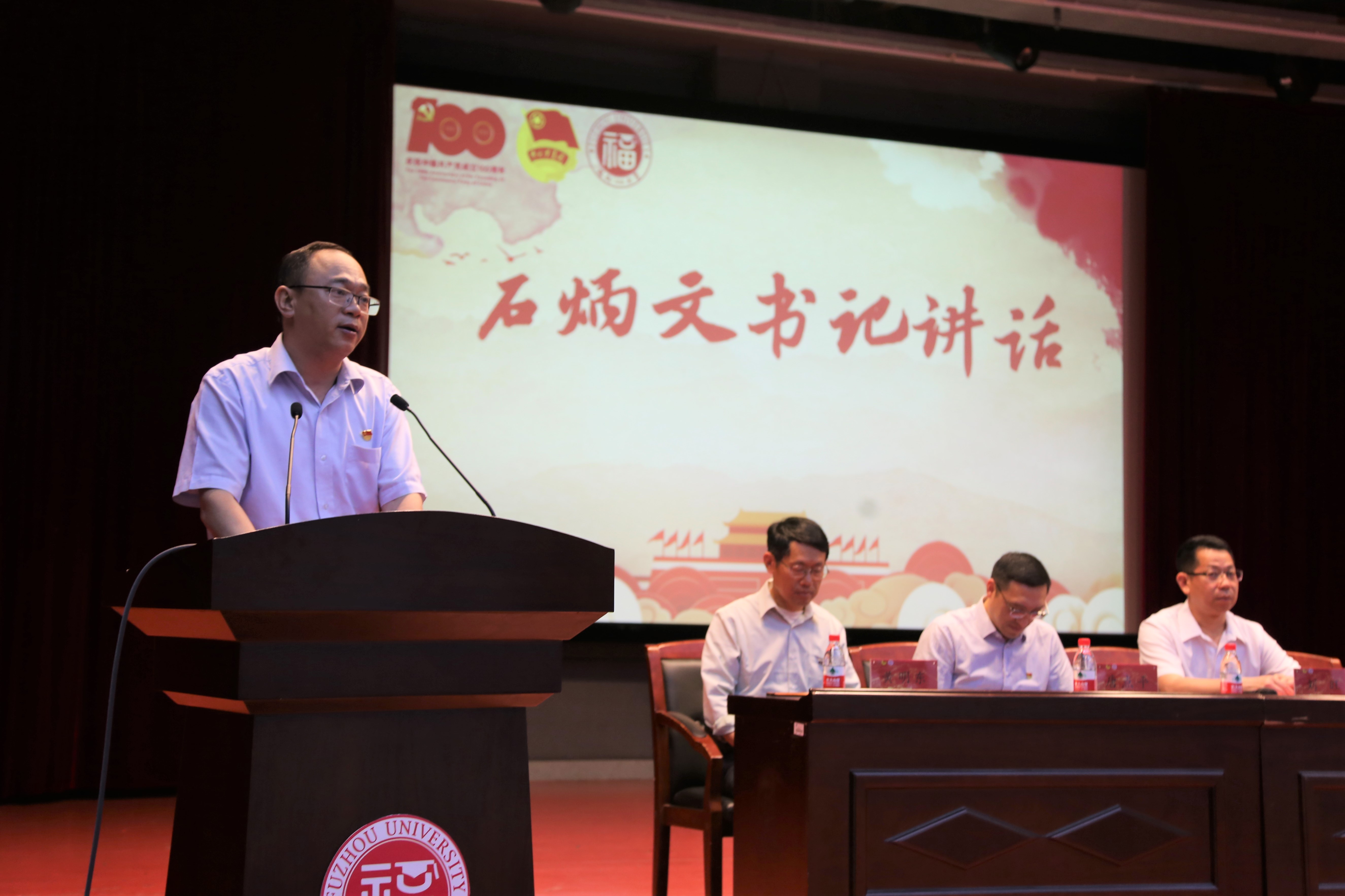 石炳文书记在讲话的开篇对到场的领导嘉宾表示热烈欢迎、向受表彰的先进集体和先进个人表示热烈的祝贺、同时也向一直努力着、奋斗着的各位团学干部和学生工作者表示衷心的感谢!随后他说到,时代的接力棒已传递到我们手中,我们有责任、有使命、有义务勇做走在时代前列的奋进者、开拓者、奉献者。并提出了对当代青年的几点希望:在培养历史视野中厚植爱国情怀、在学习专业知识中练就过硬本领、在磨砺实践锻炼中担当青春使命。
