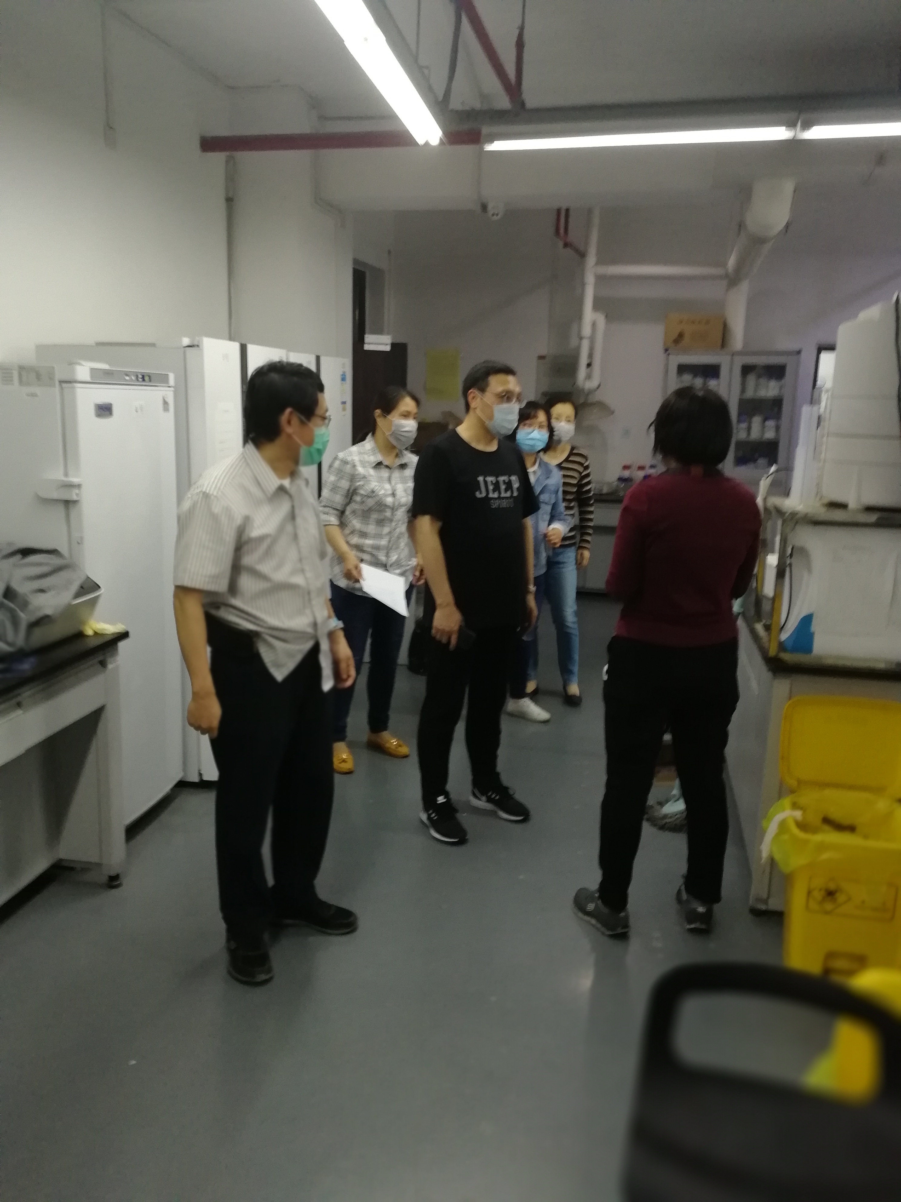 5月7日下午3点,唐点平副院长带队对阳光楼的功能所、肿瘤所和光催所的实验室,以及食品安全分析与检测部重实验室进行了安全检查。目前大部分实验室还未开放,主要跟实验室负责老师一起确认水、电和化学药品存放等安全注意事项。