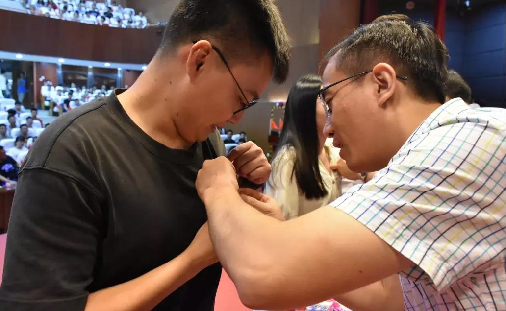 典礼伴随着庄重的中华人民共和国国歌的奏响,拉开了序幕。全场师生笔直站立,共唱国歌。紧接着,在刘旺副书记的主持下,木瓜视频 领导为学生代表们佩戴校徽并且向他们赠送书籍——黄金陵老校长所写的《反哺情怀》一书,既是对新生们入学的欢迎,也是希望新生们在大学里,能学有所成。