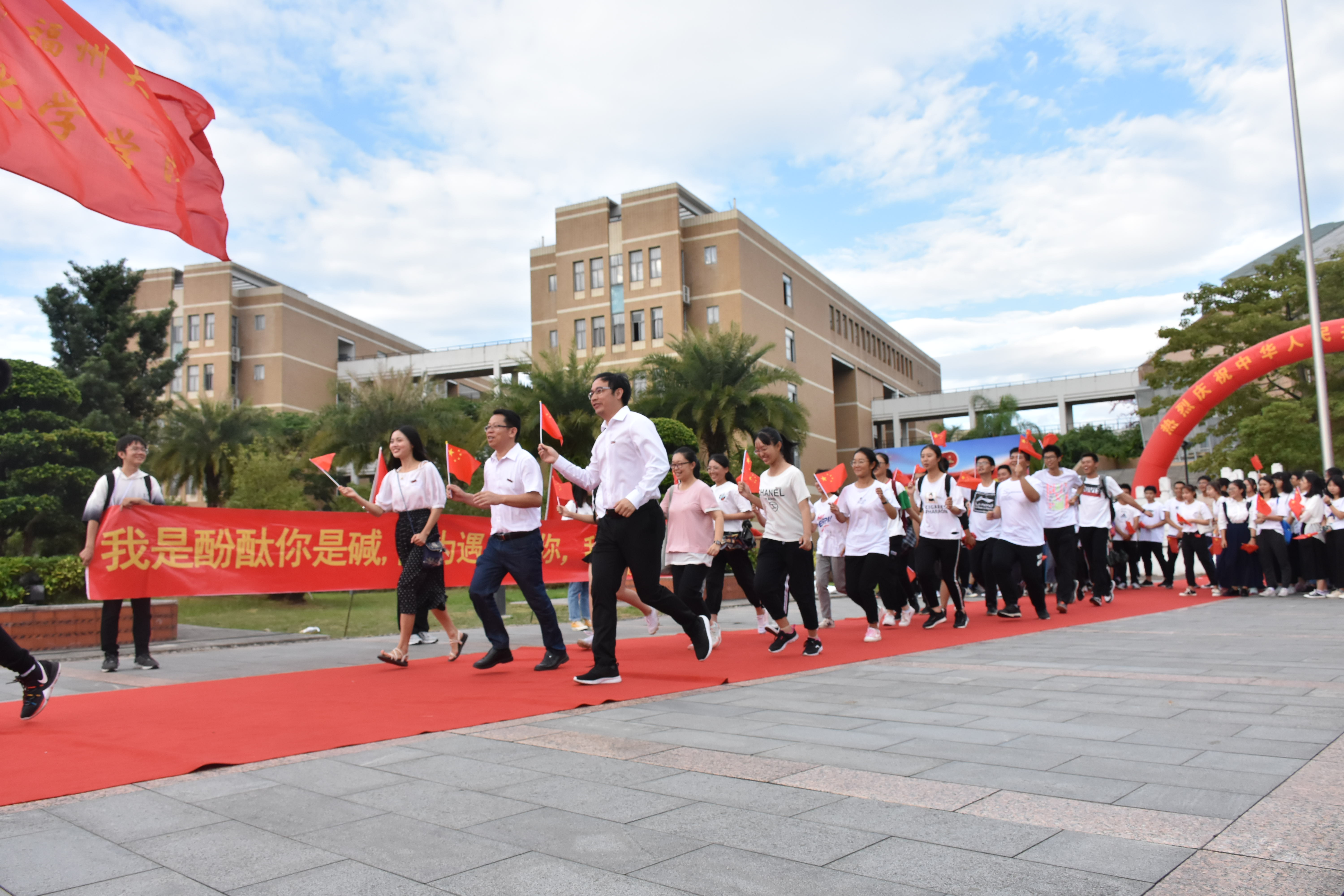 开展“我为祖国奔跑”、“集体观影阅兵仪式”,组织学生利用国庆假期通过镜头光影,拍摄一组“化学人表白我的国”祖国巨变照片,展现辉煌成就等活动祝福祖国。