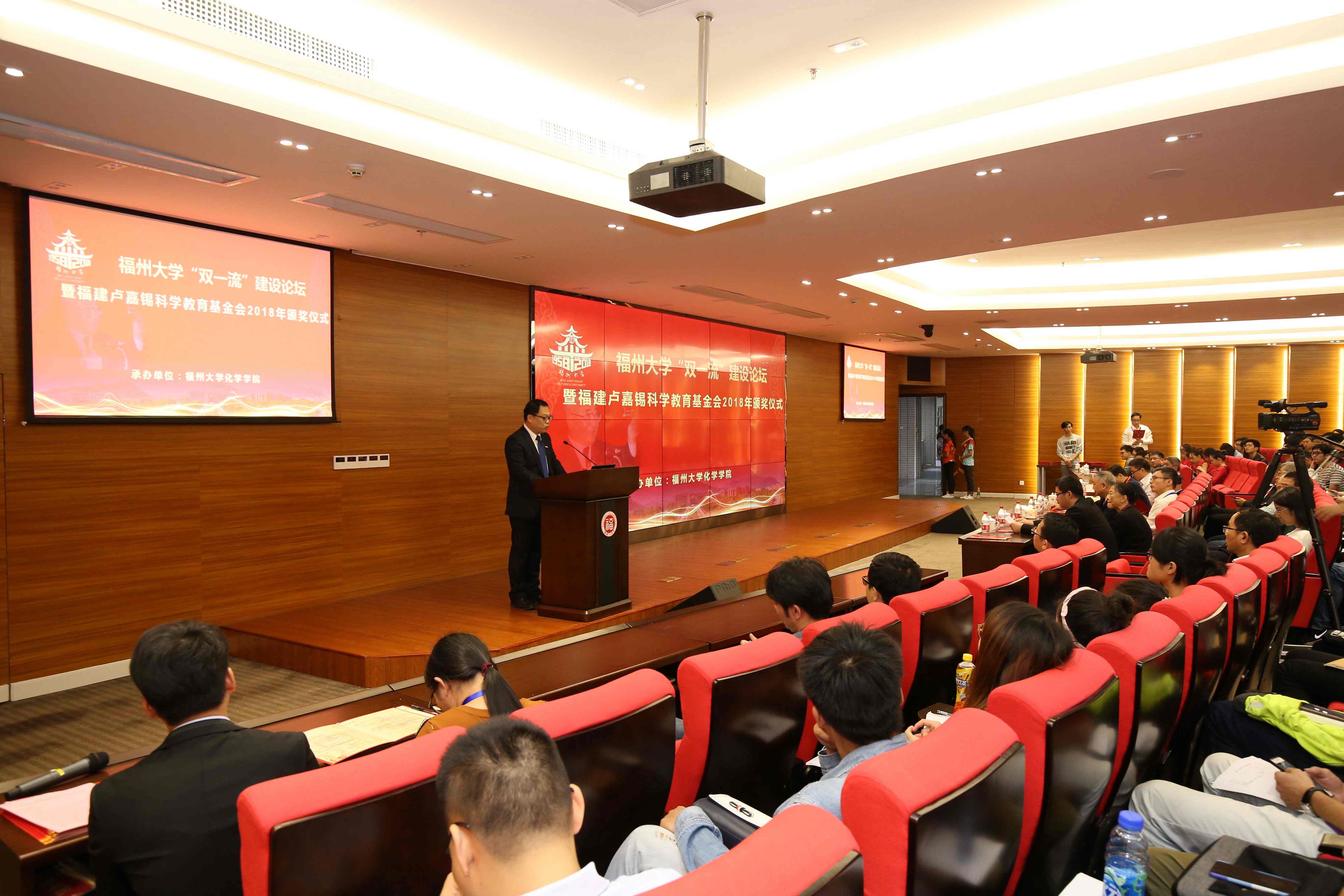 随后举行了福建卢嘉锡科学教育基金会2018年度颁奖仪式,本年度共有5位优秀教授获得卢嘉锡优秀导师奖,20名优秀学子获得优秀研究生奖,其中我校环资学院邱挺教授获得卢嘉锡优秀导师奖,另有3名学子获得优秀研究生奖。姚建年院士和吴新涛院士分别为2018年度卢嘉锡科学教育基金会获奖者颁奖。厦门大学化学化工学院江云宝教授、福建物构所邹胜晗同学代表获奖者发言。