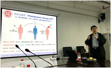 生物药光动力治疗技术国家地方联合工程研究中心主任黄明东教授以“光动力治疗”为主题,为大家介绍了全新的具有一定靶向性、微创的肿瘤治疗新方法。期间,研究中心的黄雅凡和宋美如2名同学首次喜获木瓜视频