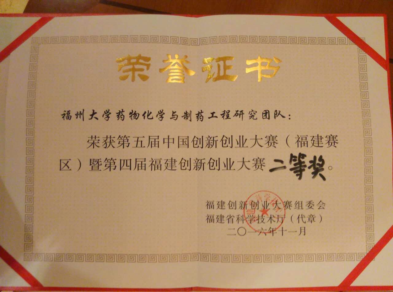 药物化学与制药工程研究团队以小组第二名的成绩获得全国第五届中国创新创业大赛优秀团队奖。