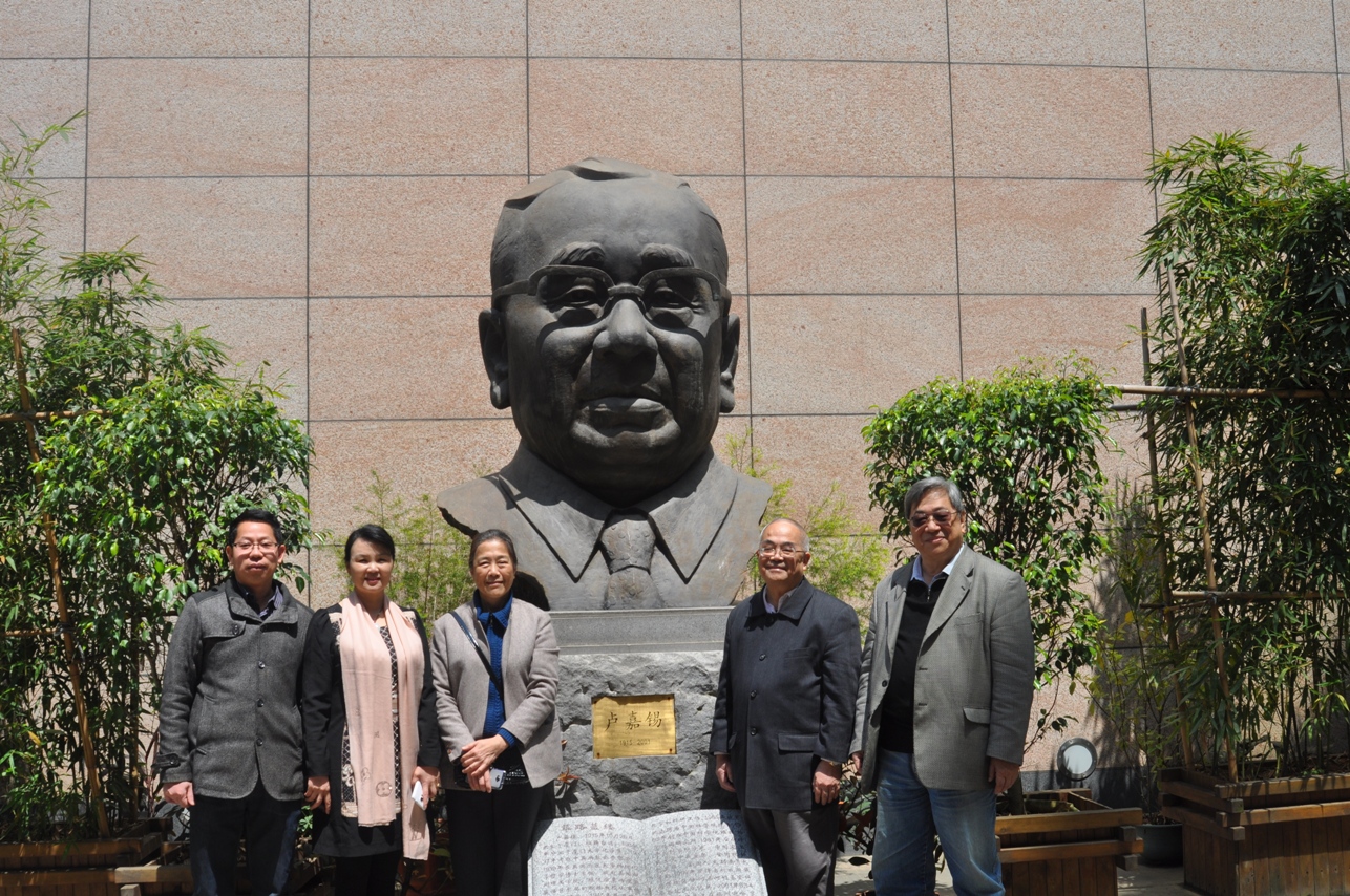 参观结束后,卢先生儿女们在卢嘉锡先生塑像前合影留恋。