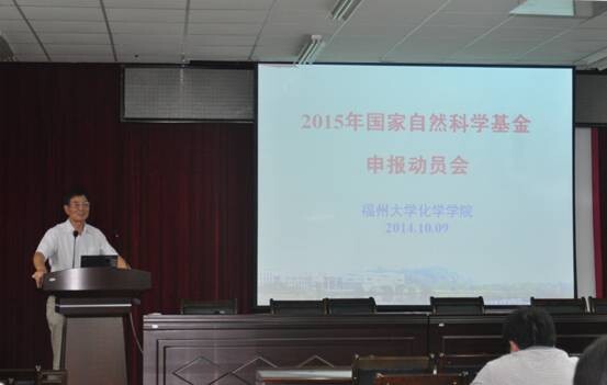 在嘉锡楼413召开2015年国家基金申报动员大会。院长王绪绪教授,副院长杨黄浩教授,各研究所教师等60余人参加了会议。会议由王绪绪院长主持。