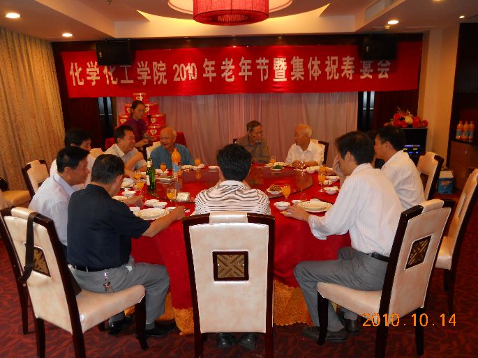 组织离退休老教师参加老年节庆祝活动。10月14日上午,近80名老教师参观了林则徐纪念馆和三坊七巷。中午,化学化工学院庆祝2010年老年节暨集体祝寿宴会在嘉宾大酒楼隆重举行,学院党政工领导及近90名老教师参加了宴会。宴会由学院副院长、工会主席林树坤老师主持。会上,王绪绪院长致辞,他对老教师们对学院作出的贡献和一直以来对学院发展的关心和支持表示衷心的感谢,并给予老教师们最诚挚的祝福。王绪绪院长还向老教师们汇报了学院一年来的工作。接着,倪朝霞书记、王绪绪院长分别向70周岁、75周岁、80周岁、85周岁的老教师们祝寿。