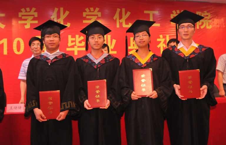 2010届校优秀毕业生和2010届获得博士、硕士、学士学位毕业生名单,学院领导为校优秀毕业生颁发了证书。毕业生代表徐勇泳、教师代表方昕老师分别作了发言。