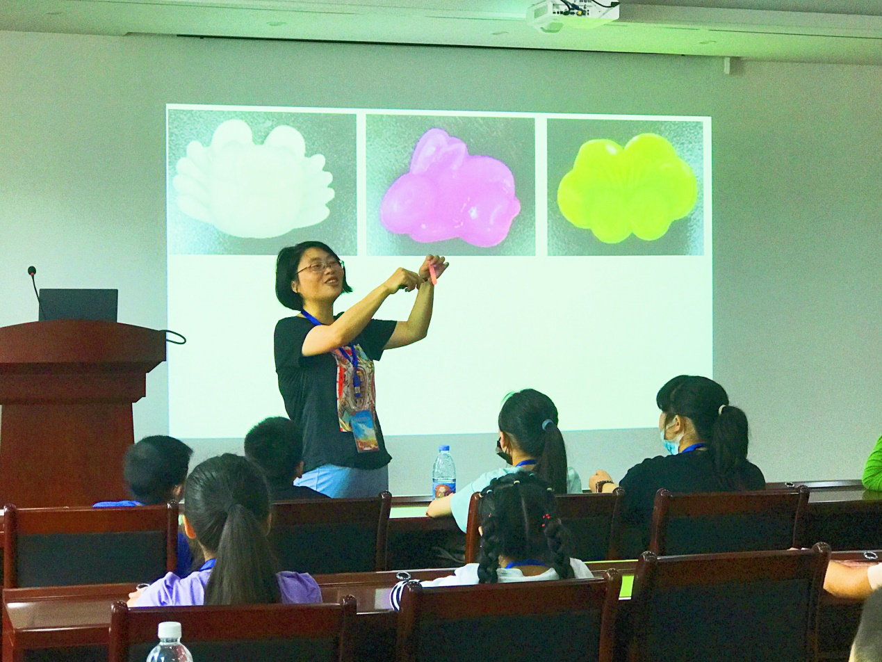 实验教学中心副主任魏巧华教授为小朋友们讲授了主题为“魅力化学,熠熠生辉”的科普讲座,通过深入浅出的讲解,向同学们揭示了发光的奥秘,发光颜色的调控方式,发光的类型以及对发光材料的深入研究在病毒检测、人民币防伪、刑侦等领域的广泛应用。讲座的内容丰富多彩,结合了大量的图片、视频以及生活中的实例,小朋友们听得兴致勃勃,意犹未尽。