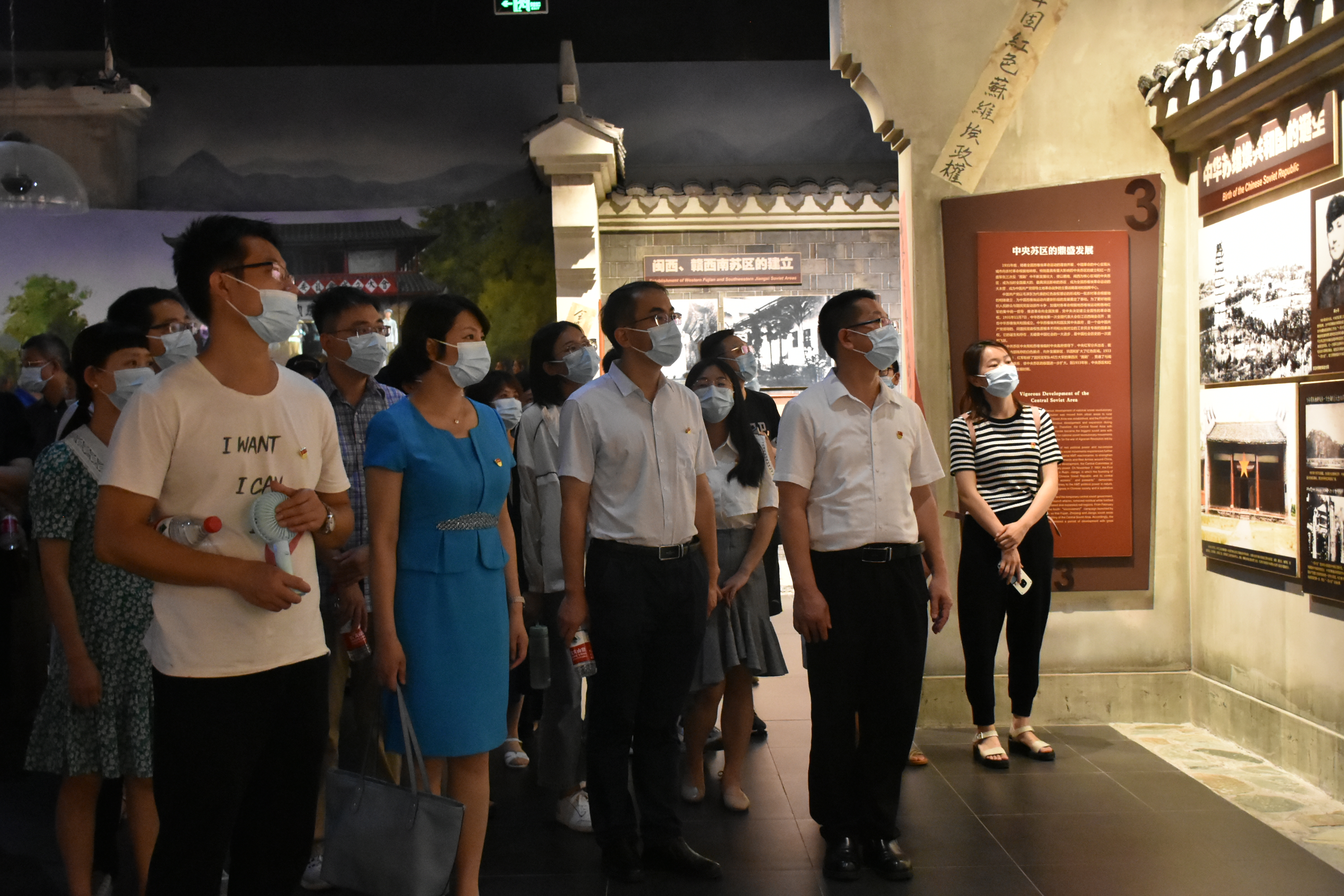 在讲解员的带领下,师生党员重点参观了“中央苏区-福建”历史陈列。福建是中央苏区的重要组成部分,这里点燃了风云岁月的明灯;飞扬着苏区英雄儿女的风采;渗透着革命先烈殷红的献血;树立着永放光芒的丰碑。波澜壮阔的苏维埃斗争历史,赋予了八闽红色土地彪炳史册的壮丽诗篇。中共闽西一大、古田会议、南阳会议、才溪乡调查……这片土地上的革命圣地如璀璨的群星,光华夺目。血与火的革命斗争洗礼,铸就了福建苏区人民“坚定信念、求真务实、一心为民、清正廉洁、艰苦奋斗、争创一流、无私奉献”为主要内涵的苏区精神。通过一幅幅图片,一件件展品,大家感知了当年福建人民是如何用他们的赤诚和热血铸就历史的辉煌和荣光。