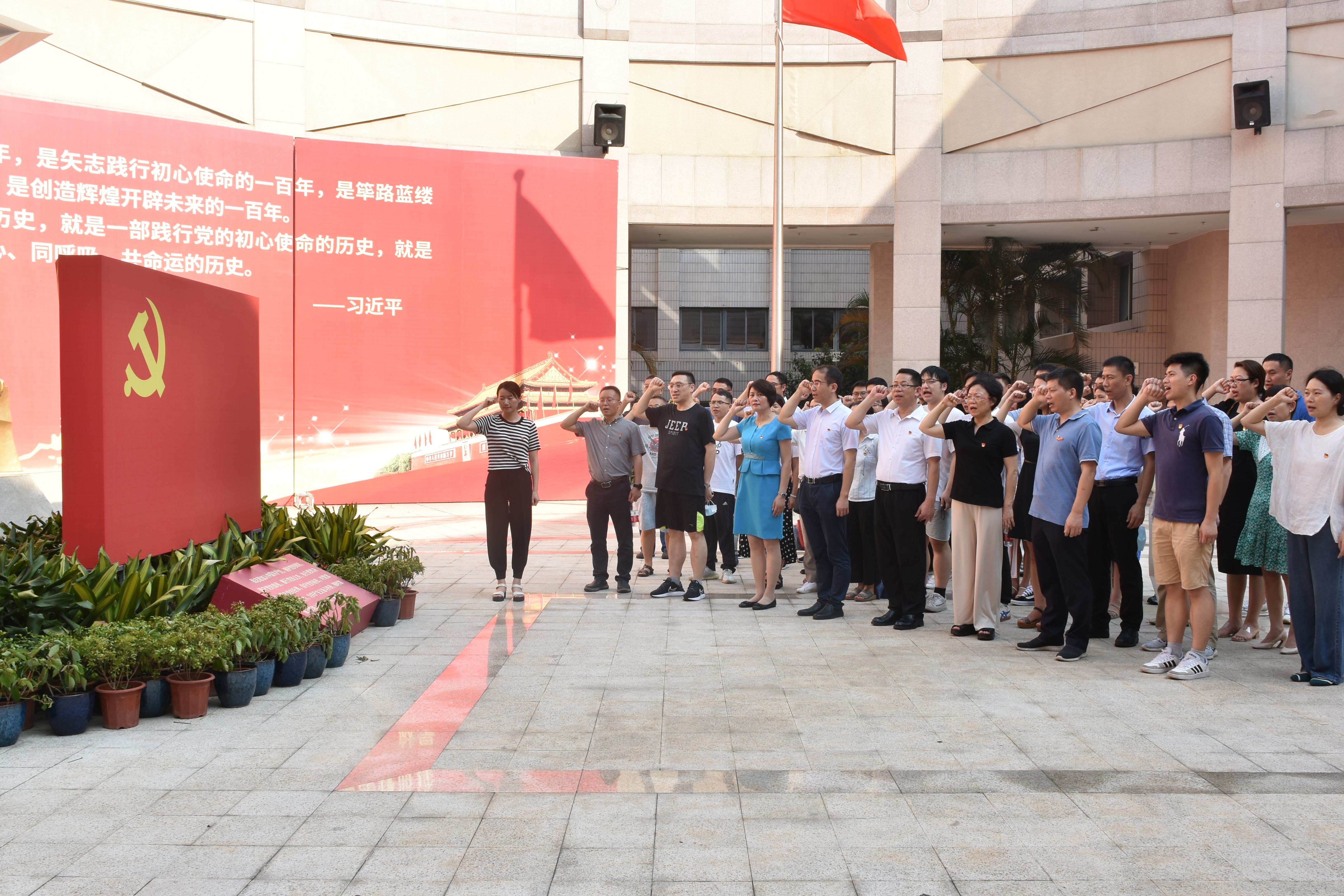参观结束,全体党员面向党旗,高举右拳重温入党誓词,大家神情庄重、声音铿锵。通过重温入党誓词,再一次体会到作为一名共产党员的责任感和使命感。