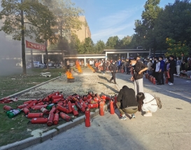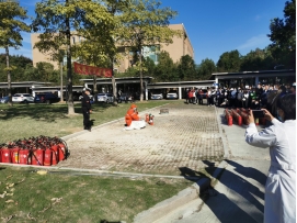 研究生新生消防安全教育活动,本次活动分为消防安全知识培训讲座和现场消防灭火演练两个部分,学院师生与保卫部、校医院医生共计500余人分两个班次参加本次活动。