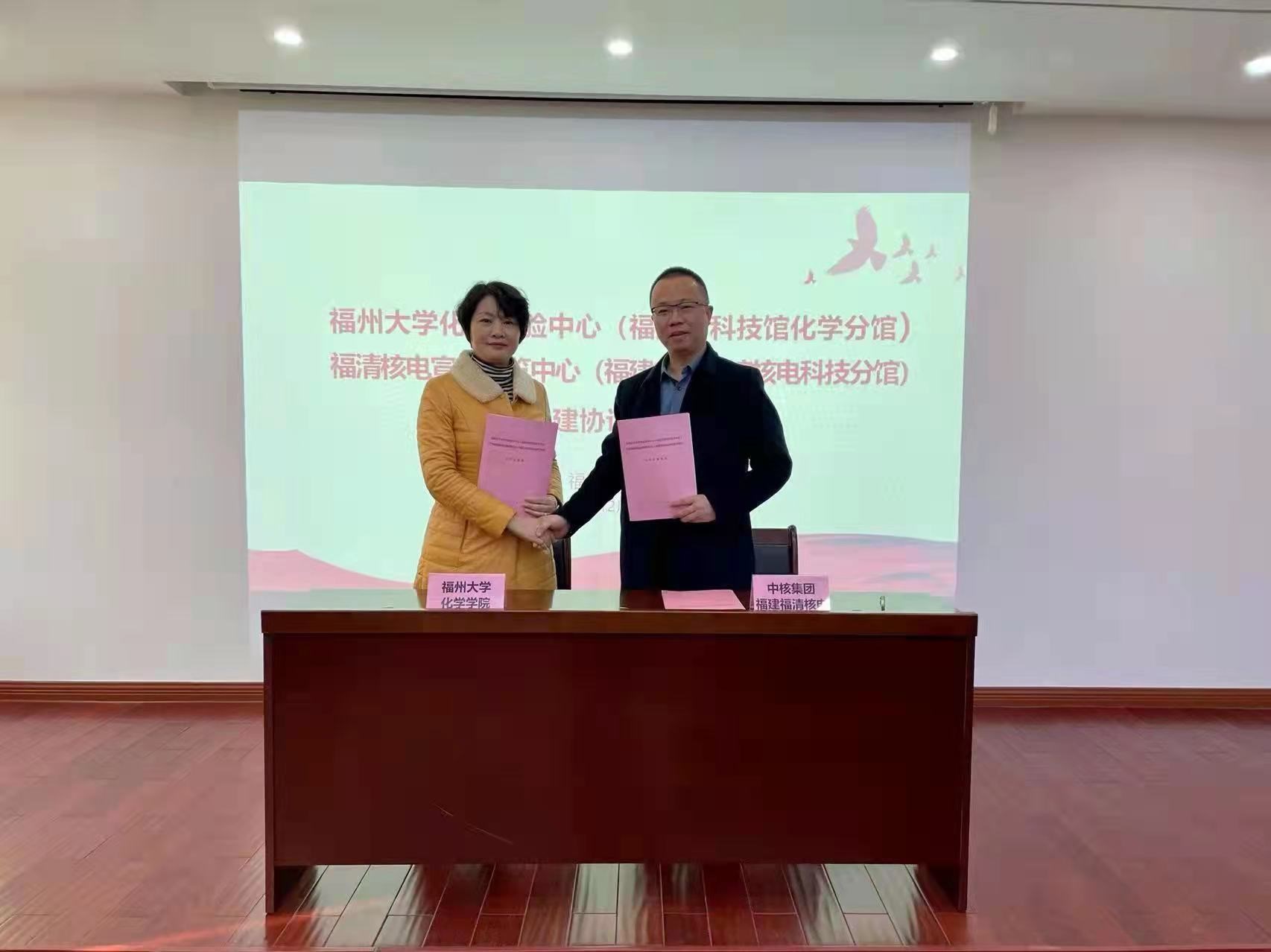化学实验教学中心(即福建省科技馆化学分馆)与中核集团福清核电宣教展览中心(即福建省科技馆核电科学分馆)合作共建签约仪式。出席本次签约仪式的嘉宾有中核集团福清核电党委宣传部成利部长、党委宣传部方胜杰副部长、党委宣传部宣传科周国烨科长,核电科普宣传领域何成希、杨月胜两位专家、木瓜视频
