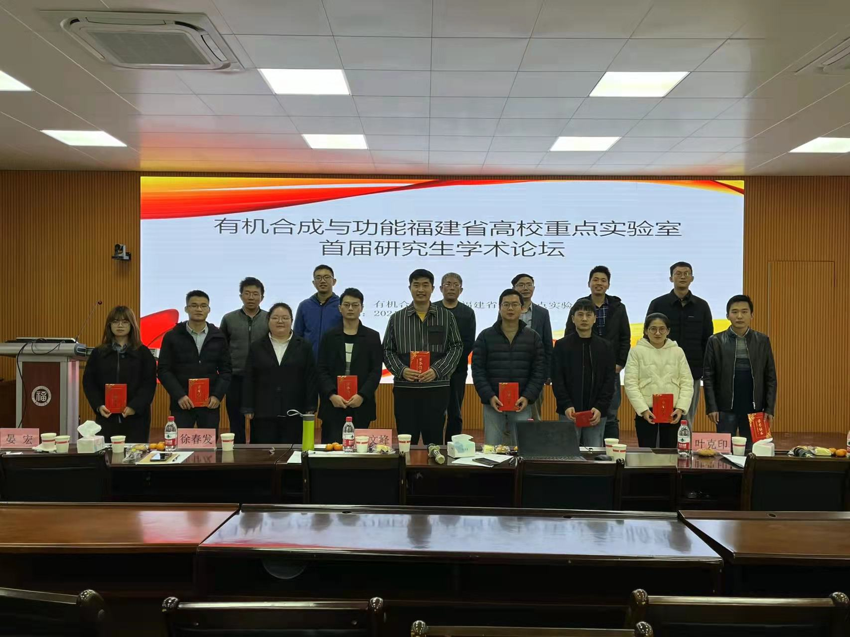有机化学系系主任王文峰教授、有机合成与功能福建省高校重点实验室主任廖赛虎教授、有机化学研究所所长叶克印教授、徐春发教授、李远明教授、晏宏副教授担任评委。