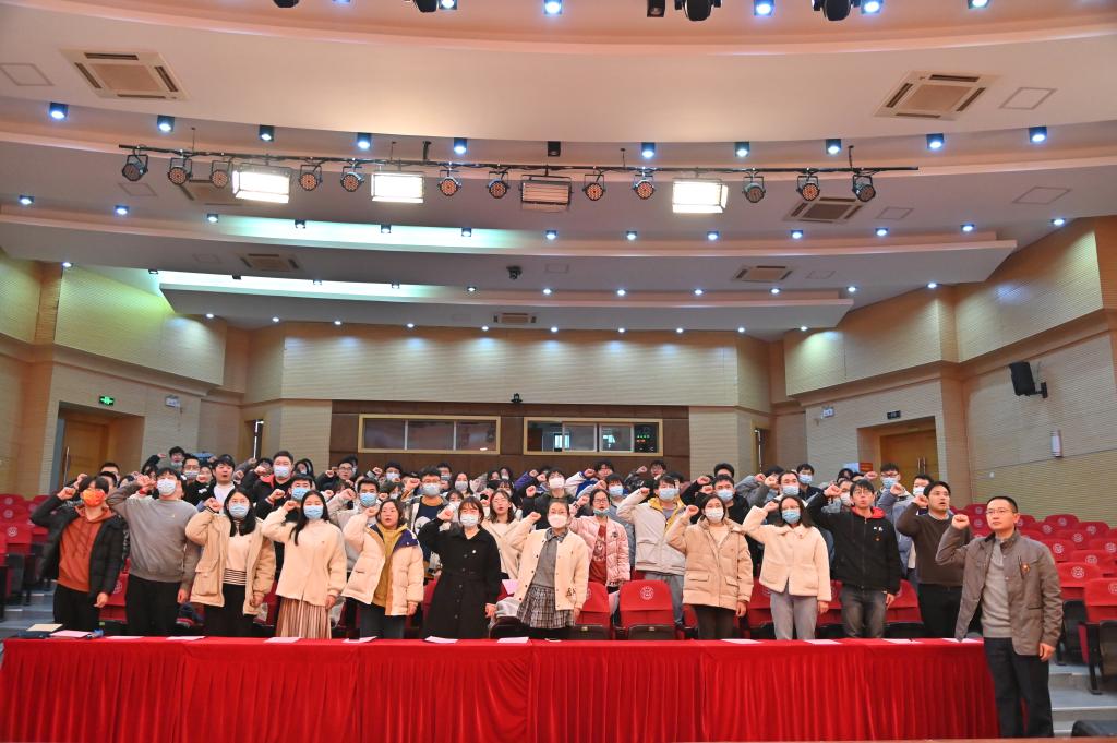 在旗山校区模拟法庭举行2021年新发展预备党员入党宣誓仪式,100余名师生党员参加此次活动。活动由院党委副书记常凯主持。