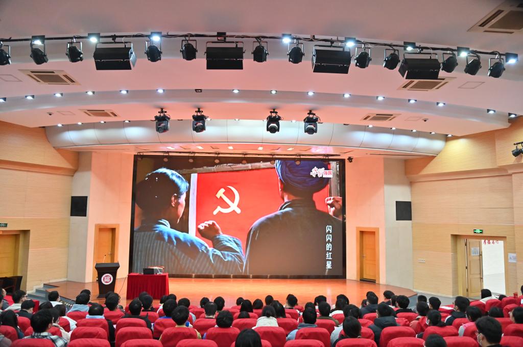 随后,会场播放了微视频《我宣誓》。视频中,一代又一代优秀中国共产党人用青春、热血乃至生命,践行自己在党旗下的铮铮誓言。无论身处哪个年代、身在哪个岗位,他们都把为人民为国家为民族赴汤蹈火、无私奉献,当作人生崇高价值追求,当作矢志不渝的初心使命,堪称新时代广大党员干部学习的光辉典范。全场党员被深深感动,心潮澎湃。微视频的播放将现场氛围带向了高潮。