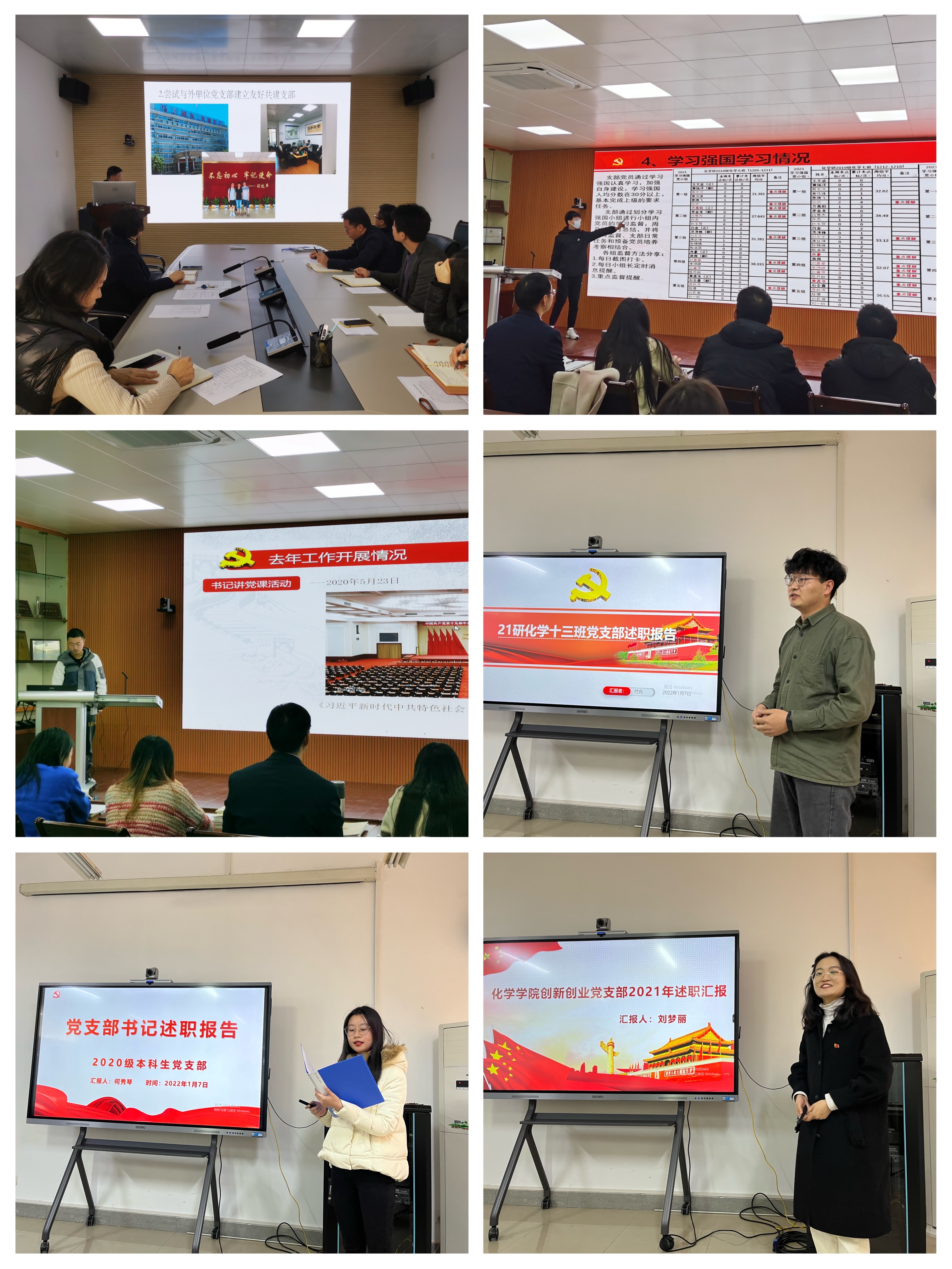 本年度学院师生党支部书记述职考核由书面述职、查阅材料、现场述职、考核评议等部分组成。现场述职会上,8位教工党支部书记和48位学生党支部书记围绕履职尽责情况、支部建设情况、党日活动开展情况、存在问题和未来展望等方面进行展示汇报,全面回顾各支部2021年度开展工作的亮点成效及存在的不足,并提出2022年的工作计划。