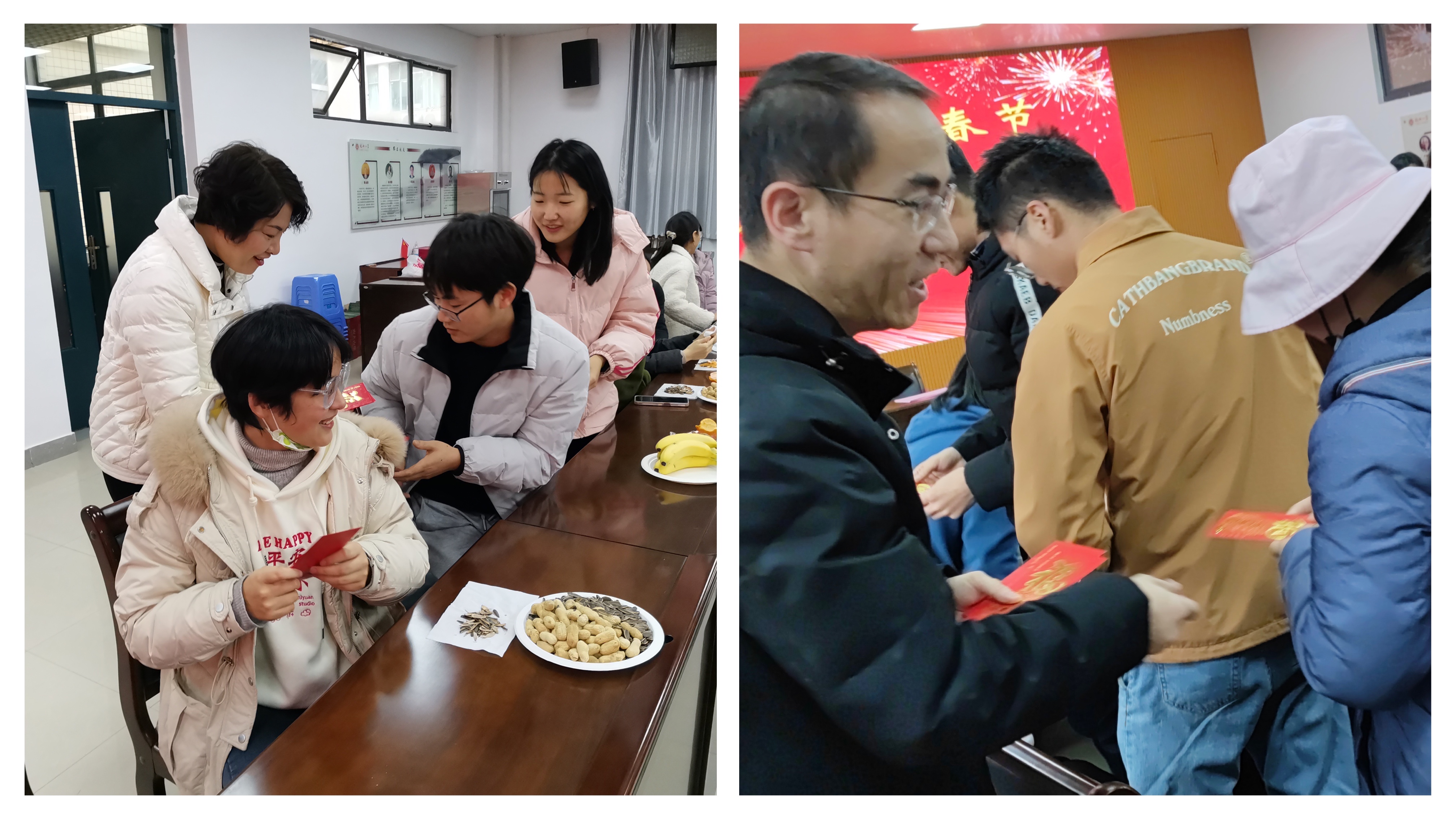 随后,学院领导向留校学生代表发放了新春慰问金,大家喜气洋洋,谈笑风生,现场的氛围更加热闹、融洽。同学们都很激动,坦言找到了在家过年的感觉。