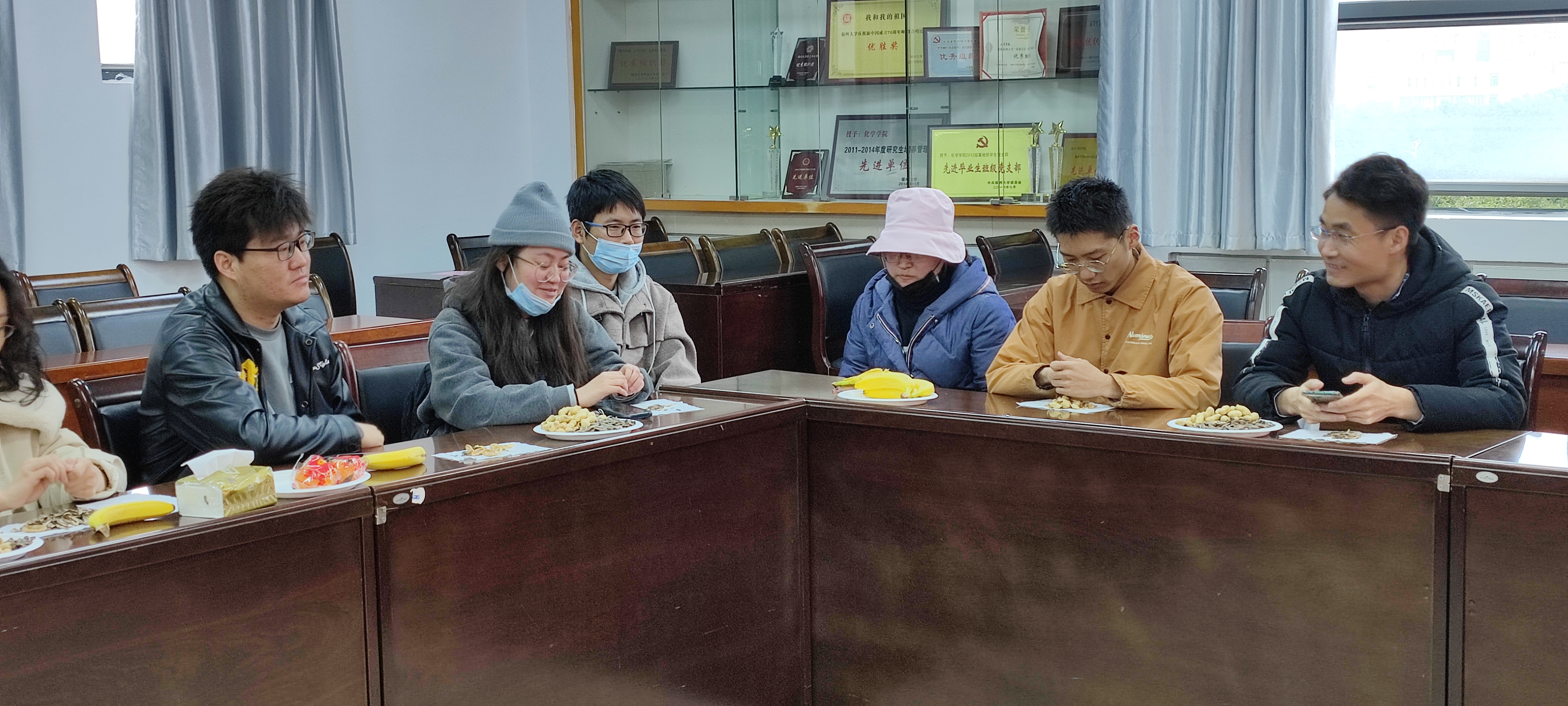同学们在温暖、宽松的氛围中畅所欲言,谈了自己在校的感受和寒假的规划。来自台湾的大一新生傅羽均表示,来福大一个学期了,感受到了浓厚的学习氛围,身边的同学都特别努力,自己也要迎头赶上,另外特别喜欢福州的小吃,希望可以和大家以美食会友,过个幸福年。来自河南的孙启启同学说到,因家乡疫情反复无常,为响应国家就地过年的号召,他选择了留校,虽远离家乡,但老师的关心让他感到特别温暖。这段时间是一个让自己去静心思考的好机会,可以在科研方面查漏补缺。多位因学习科研进度而留校的研究生表示,学校在寒假里各项保障措施都很到位,举办的新春活动丰富多彩,同学们的陪伴和老师们的关怀扫去了没有家人陪伴的寂寞,自己也会劳逸结合,在学习科研方面加把劲。院领导详细了解同学们近期的生活、学习及身心健康情况,就同学们提出的问题一一解答回应,并强调有任何困难和问题,都请同学们及时与辅导员联系。