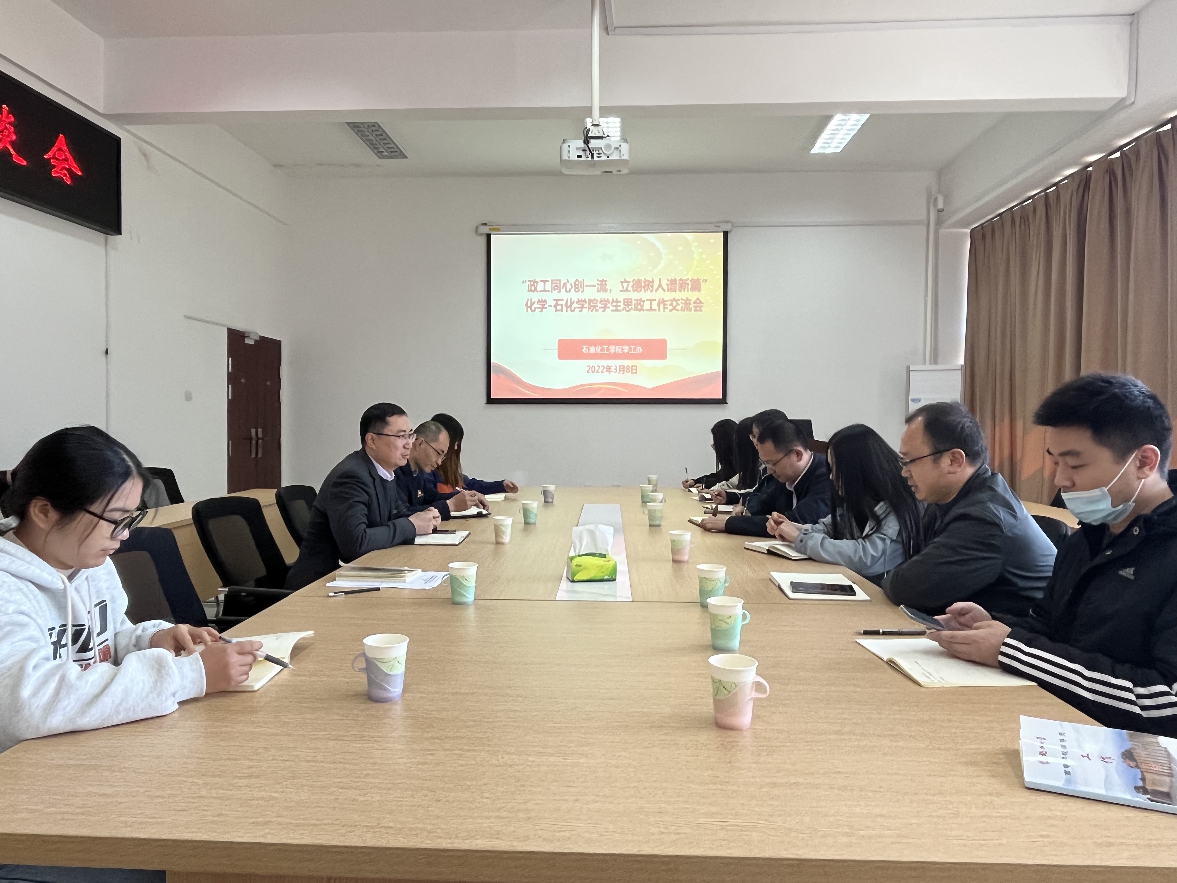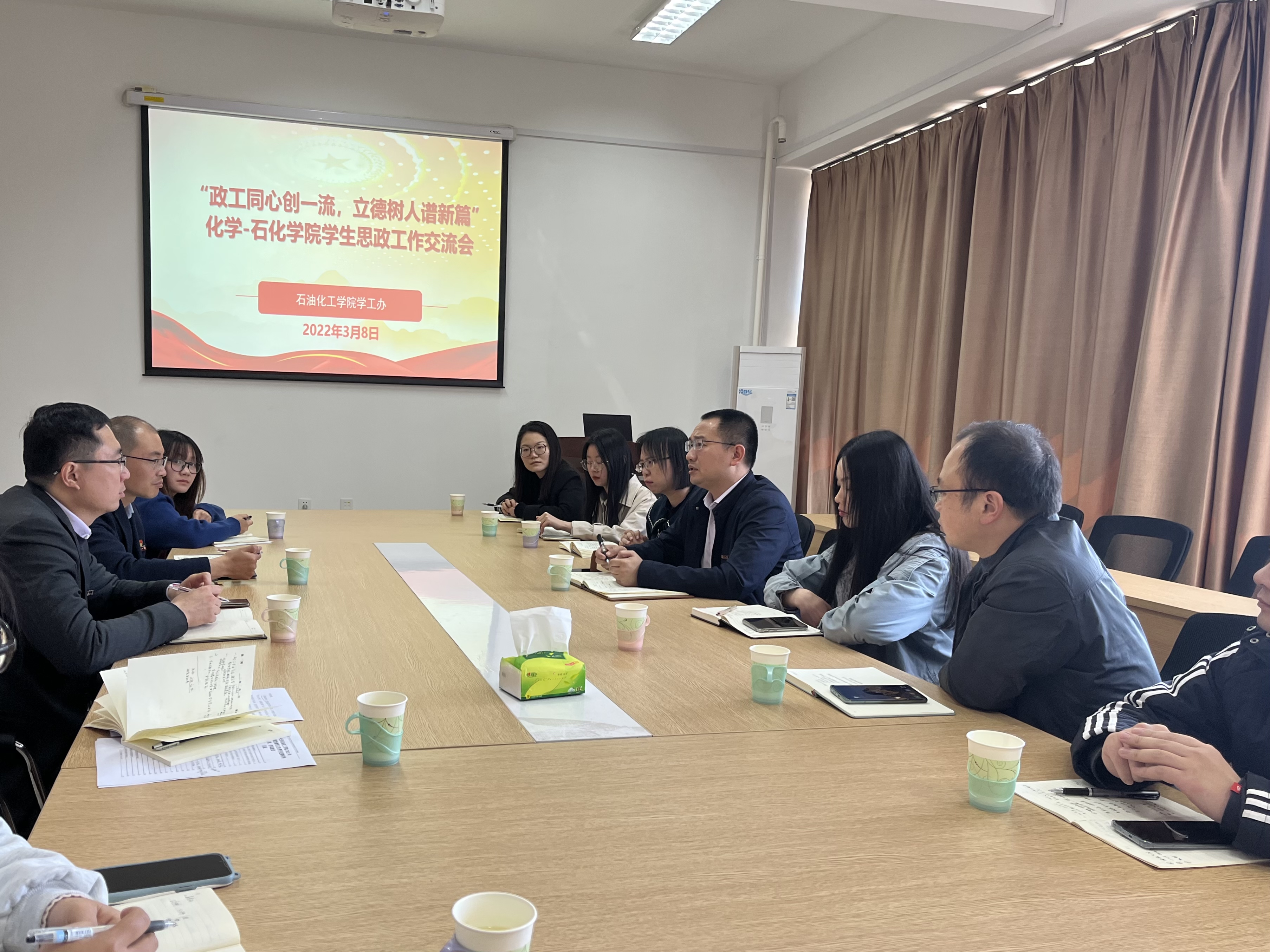 学工组一行表示热烈欢迎。他指出,纵观校史,化学和化工分分合合多次,都是不同时代背景下的客观需要,但无论如何,双方都是亲密无间的一家人。他重点介绍了石油化工学院在考研升学、党团活动策划与宣传、研究生日常管理、本科生学风建设等方面的工作举措。石化学院的几位辅导员也就一些工作细节进行了补充说明。