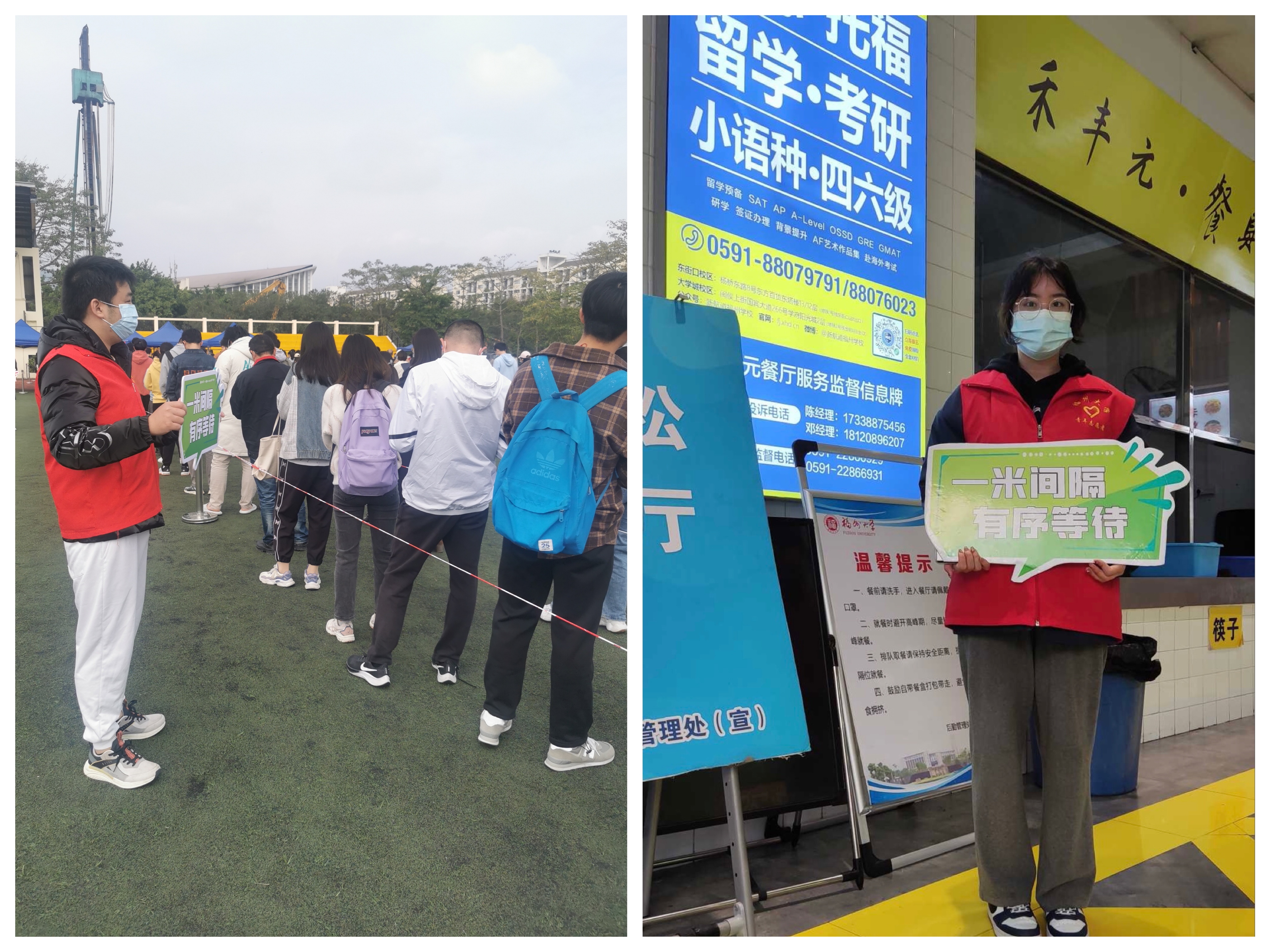 安排志愿者轮岗值班,进行学校公共区域的科学防疫劝导行动,避免核酸检测现场人员密集、制止食堂师生堂食密集、制止谣言与恐慌等,积极宣传提倡错峰而行、错峰就餐,以最精准、最实在的防疫举措养成师生良好的生活行为习惯。