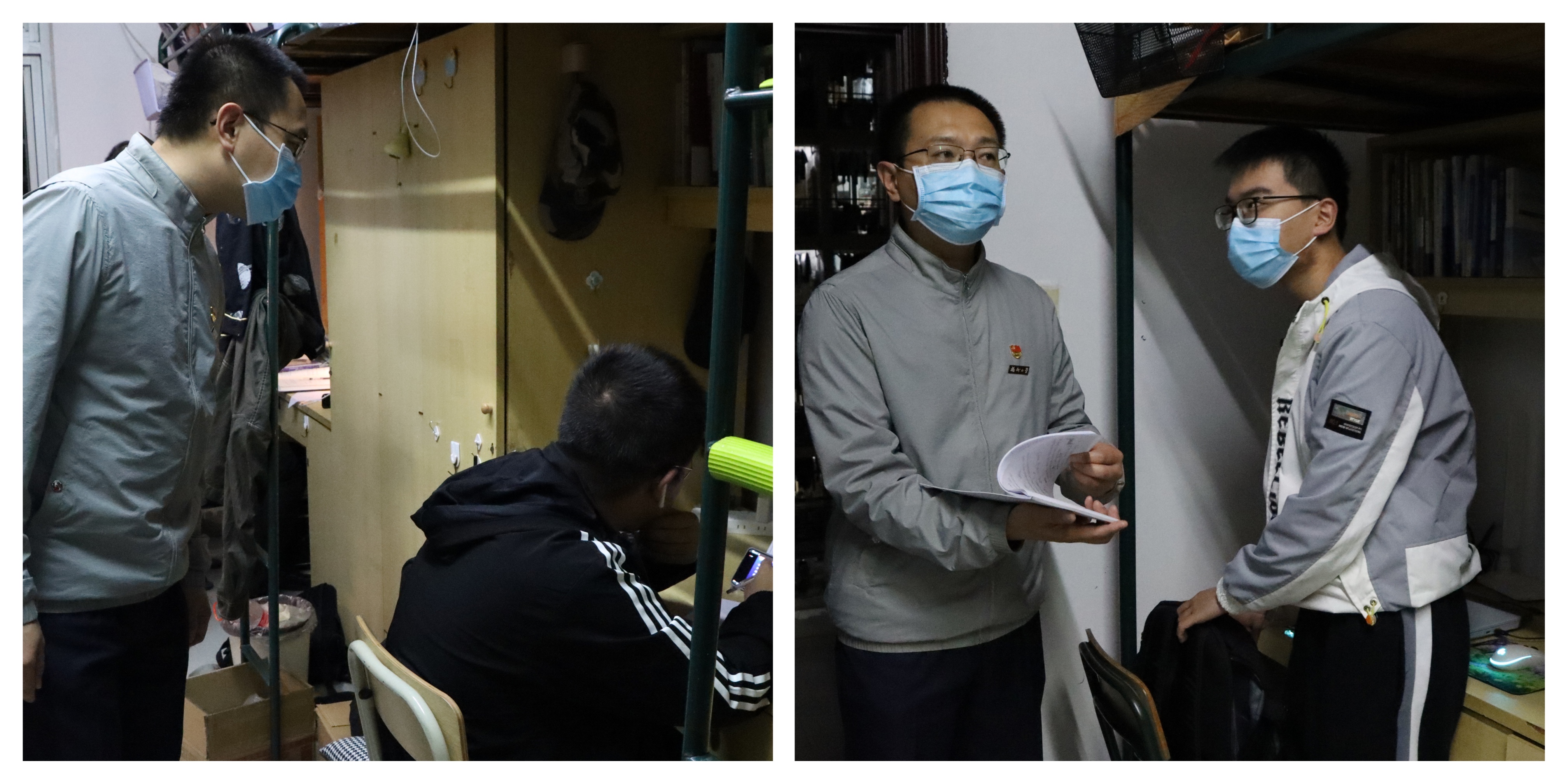 特殊时期,全体政工干部第一时间入住校园,多次到宿舍找学生谈心谈话。学院党委常凯副书记深入学生宿舍了解同学们生活物资储备、在线课程的听课状态等情况,关心疫情对同学们实习就业及考研复试的影响,并向木瓜视频