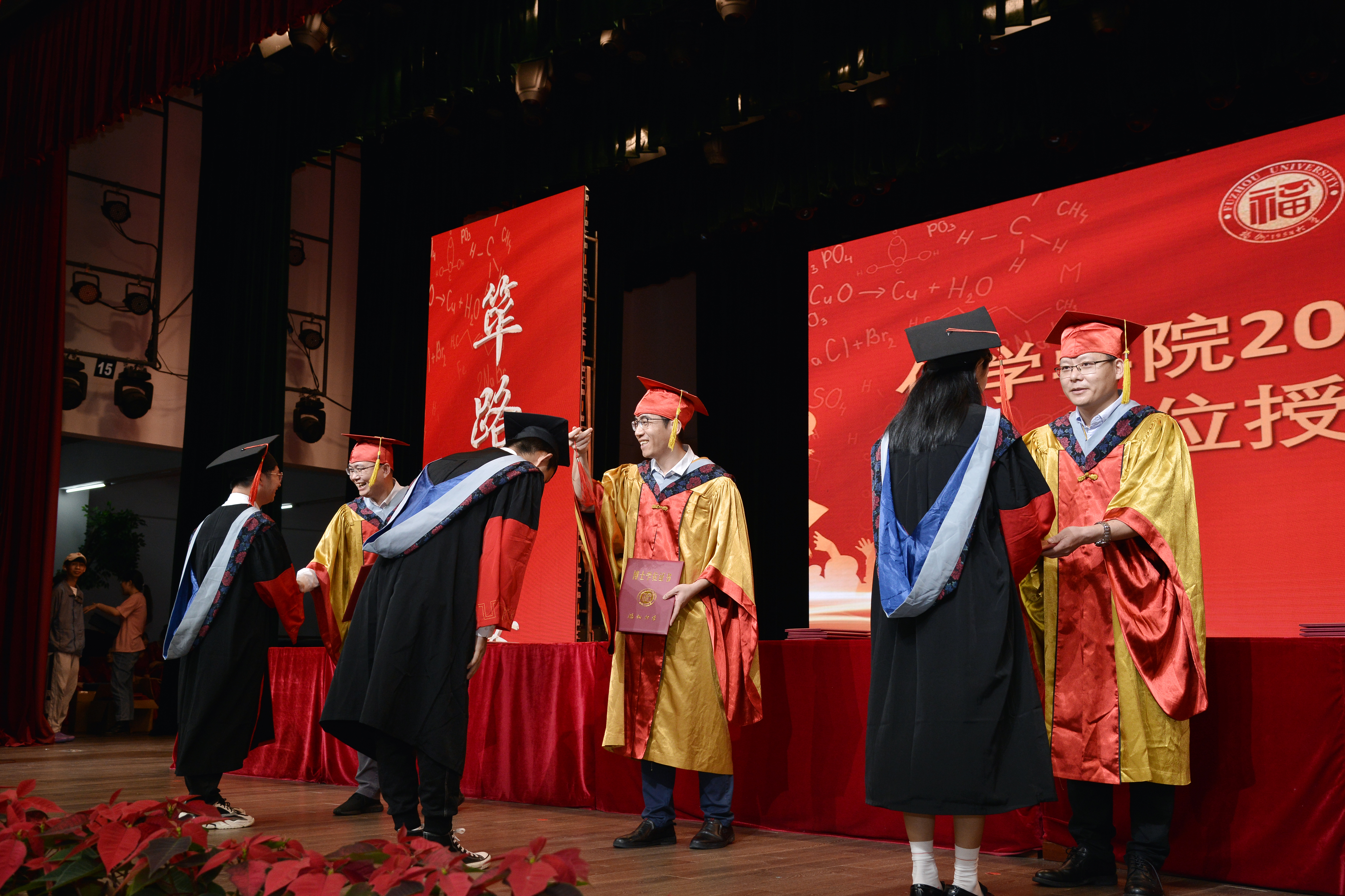 2022届毕业典礼暨学位授予仪式在旗山校区宏晖文体综合馆隆重举行。学院党委书记张泓研究员、院长郑寿添教授、副院长张金水教授、副院长林子俺教授、院长助理谢在来教授、院长助理林伟教授、院长助理叶克印教授、院长助理谭理副教授、院工会主席陈珠灵教授级高级实验师出席典礼。学院各系、所负责人,教师代表,各年级辅导员及2022届毕业生参加。本次典礼由学院党委副书记常凯主持。