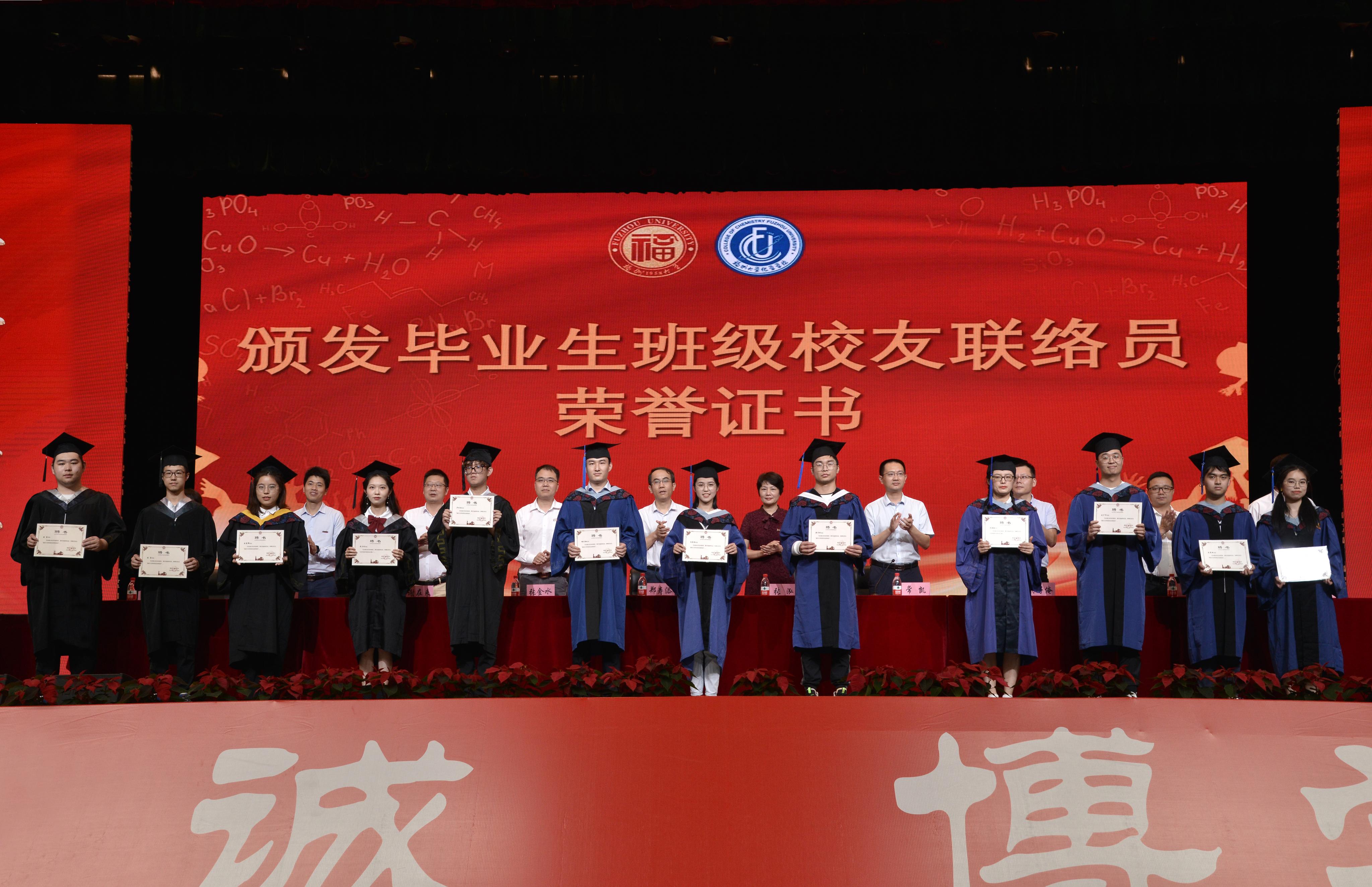 院领导为优秀毕业生代表颁发荣誉证书,并为毕业生班级校友联络员颁发聘书。