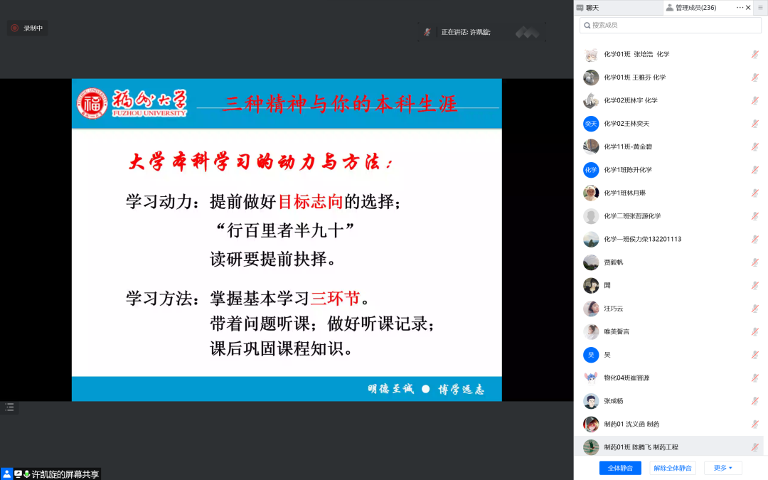 关工委副主任林树坤教授为2022级本科新生进行“福大三种精神与大学生学习生涯”线上主题分享会。