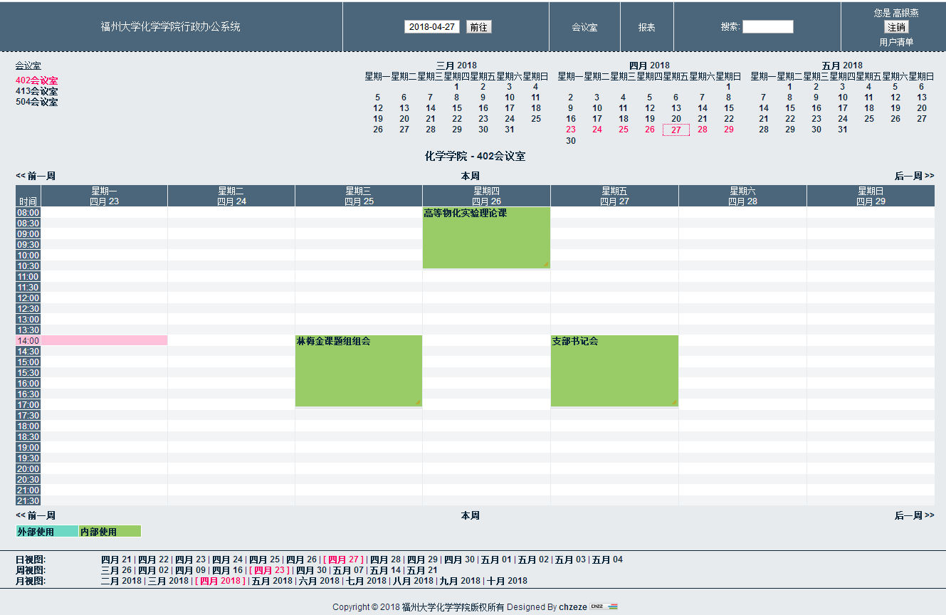 2、进入木瓜视频,可选日视图,周视图,月视图三种显示样式,之后,选择所需预定的会议室和预定的时间
