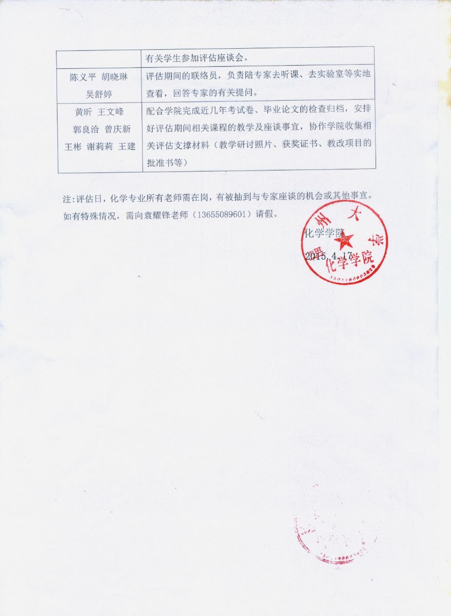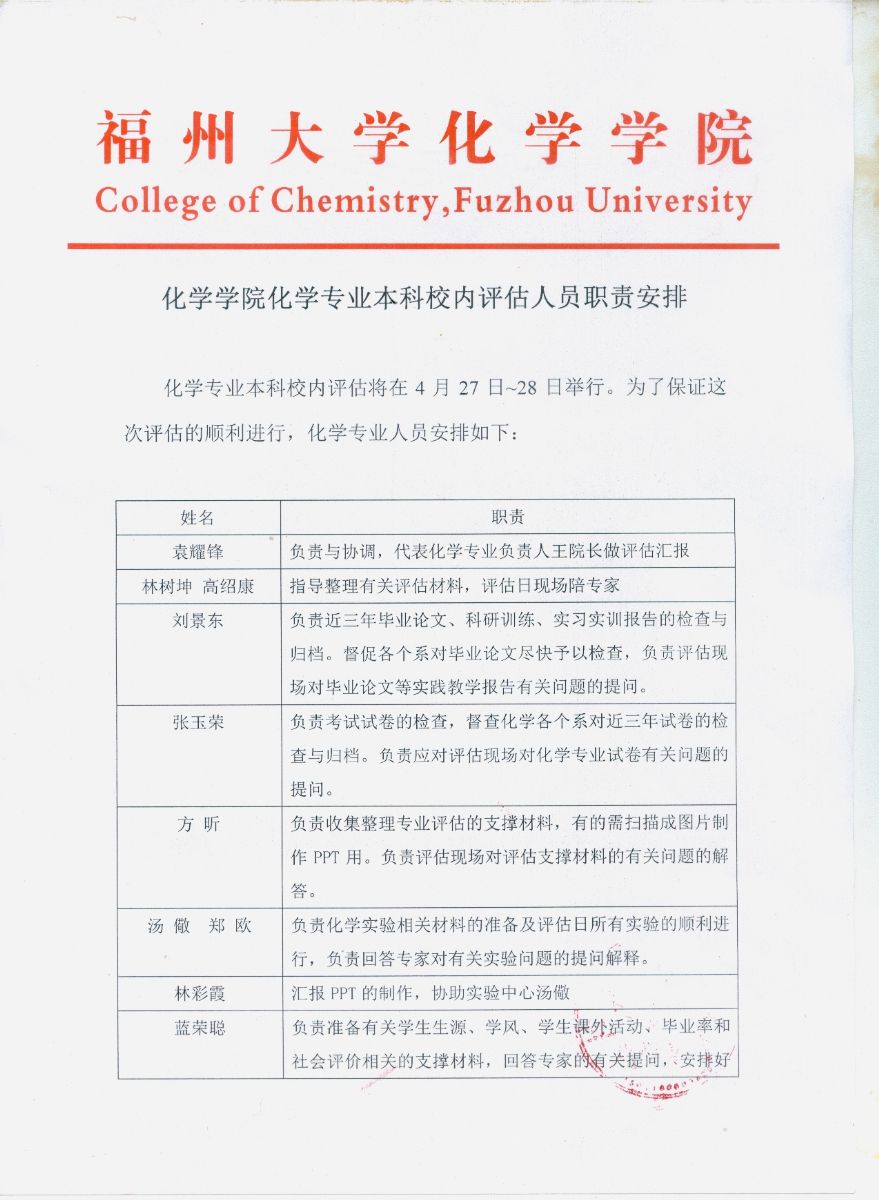 关于木瓜视频 化学专业校内本科评估的安排通知
