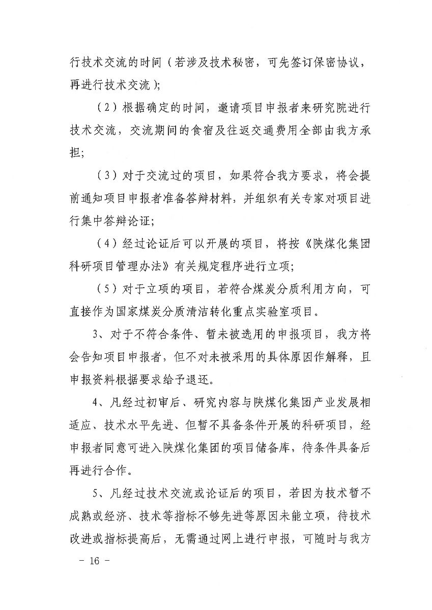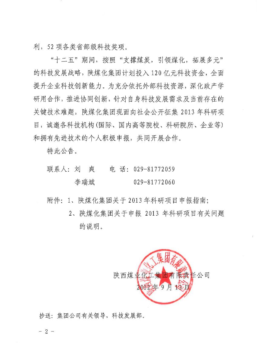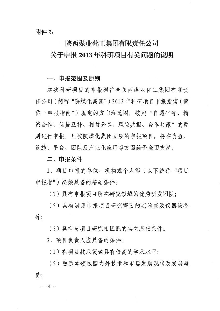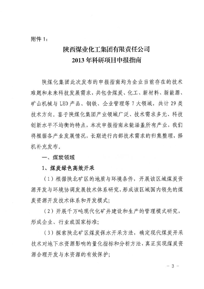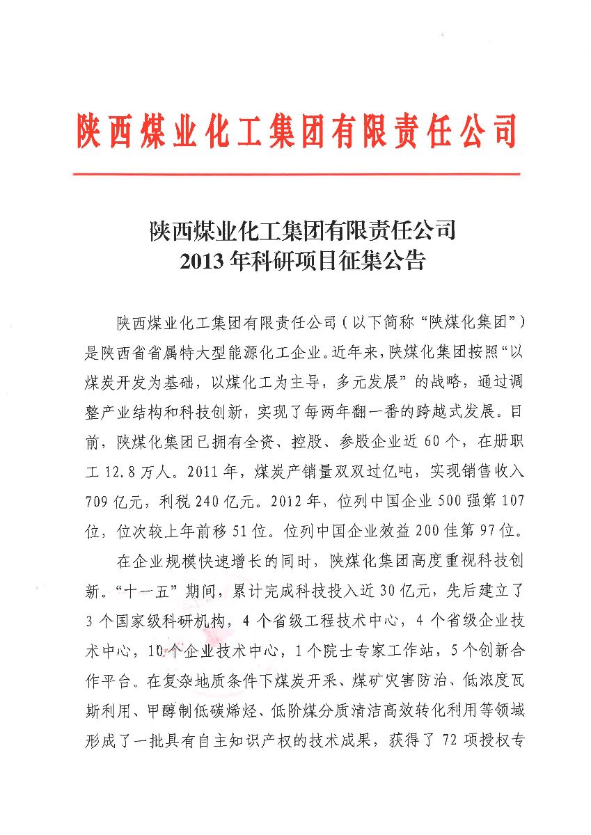陕西煤业化工集团有限公司2013年科研项目征集公告